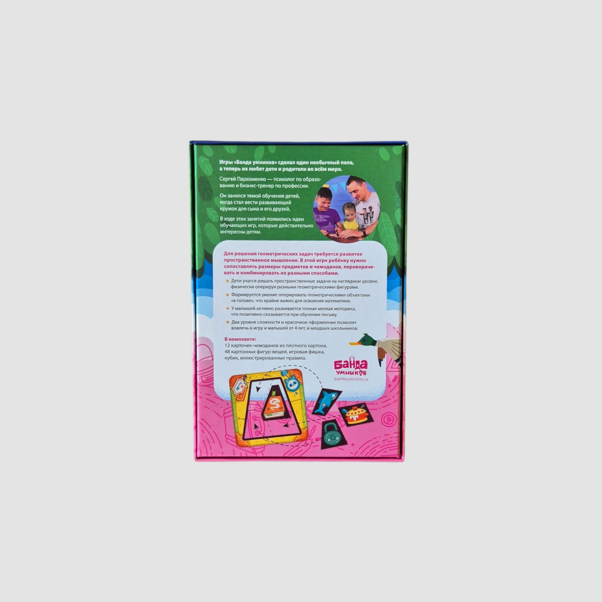 Playing "Baggage", children learn to solve spatial problems. Spatial thinking is actively developed, as well as the ability to operate figures "in the head" and solve practical geometric problems, which is important for mastering mathematics in the future. And "Baggage" also develops precise fine motor skills, which are needed for learning to write.
