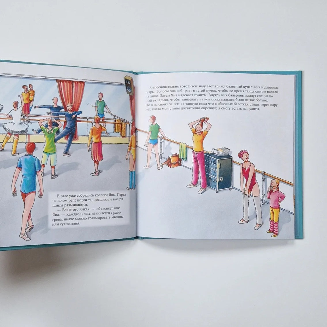 In this book, a girl named Hannah gets to a dress rehearsal at the theater and learns everything about the interesting and difficult profession of a ballerina. Every day, her friend Yana trains hard to be able to dance on her toes and perform such complex movements as jeté, fouette, arabesque and many others. Together with technicians, stage mechanics, costume designers, conductors, choreographers, ballet dancers give the audience the opportunity to watch a wonderful performance.