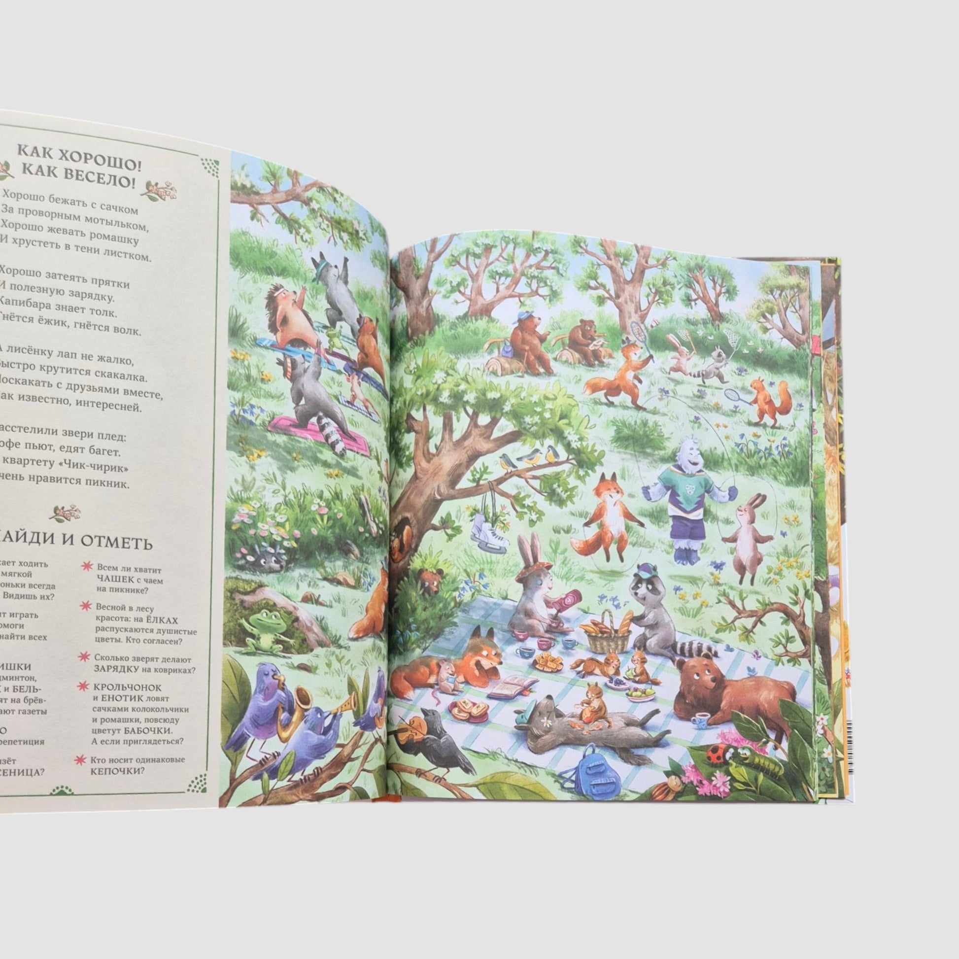 A Wimmelbuch about forest dwellers who find something to do all year round and are never bored without something to do.