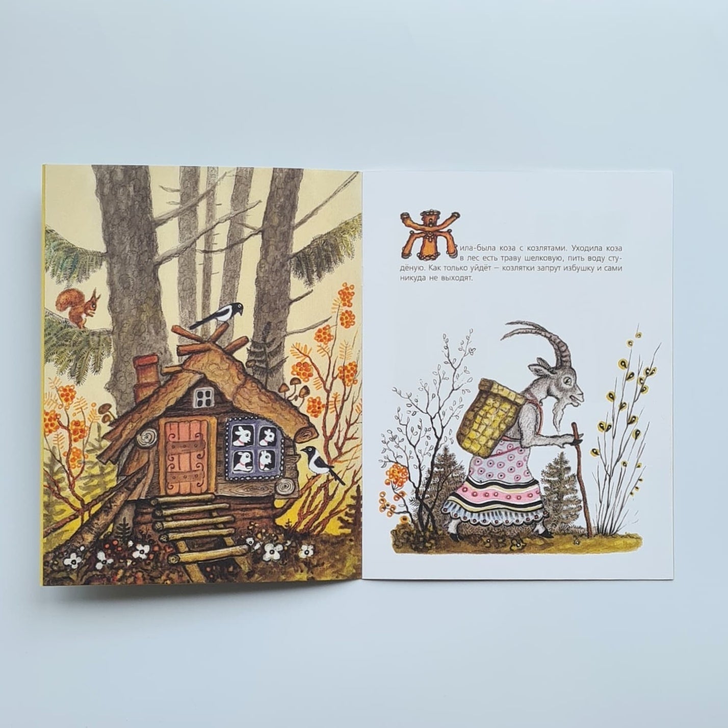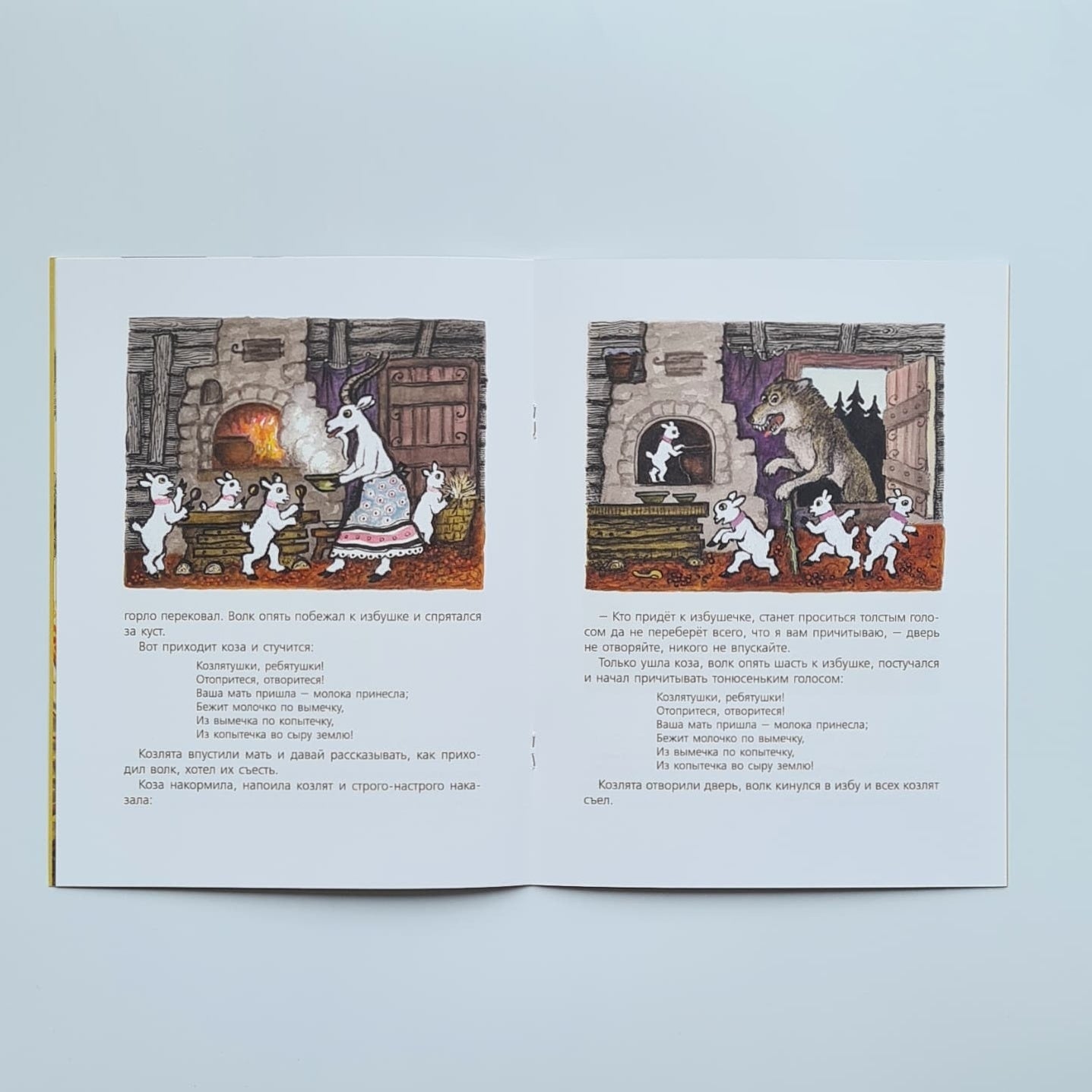 The Russian folk tale about the wolf and the kids contains folk wisdom that is understandable to the youngest readers. The story, familiar to everyone since childhood, is presented in the adaptation of A. Tolstoy, and the text is accompanied by unique illustrations by Yuri Vasnetsov, each of whose books is a small artistic masterpiece.