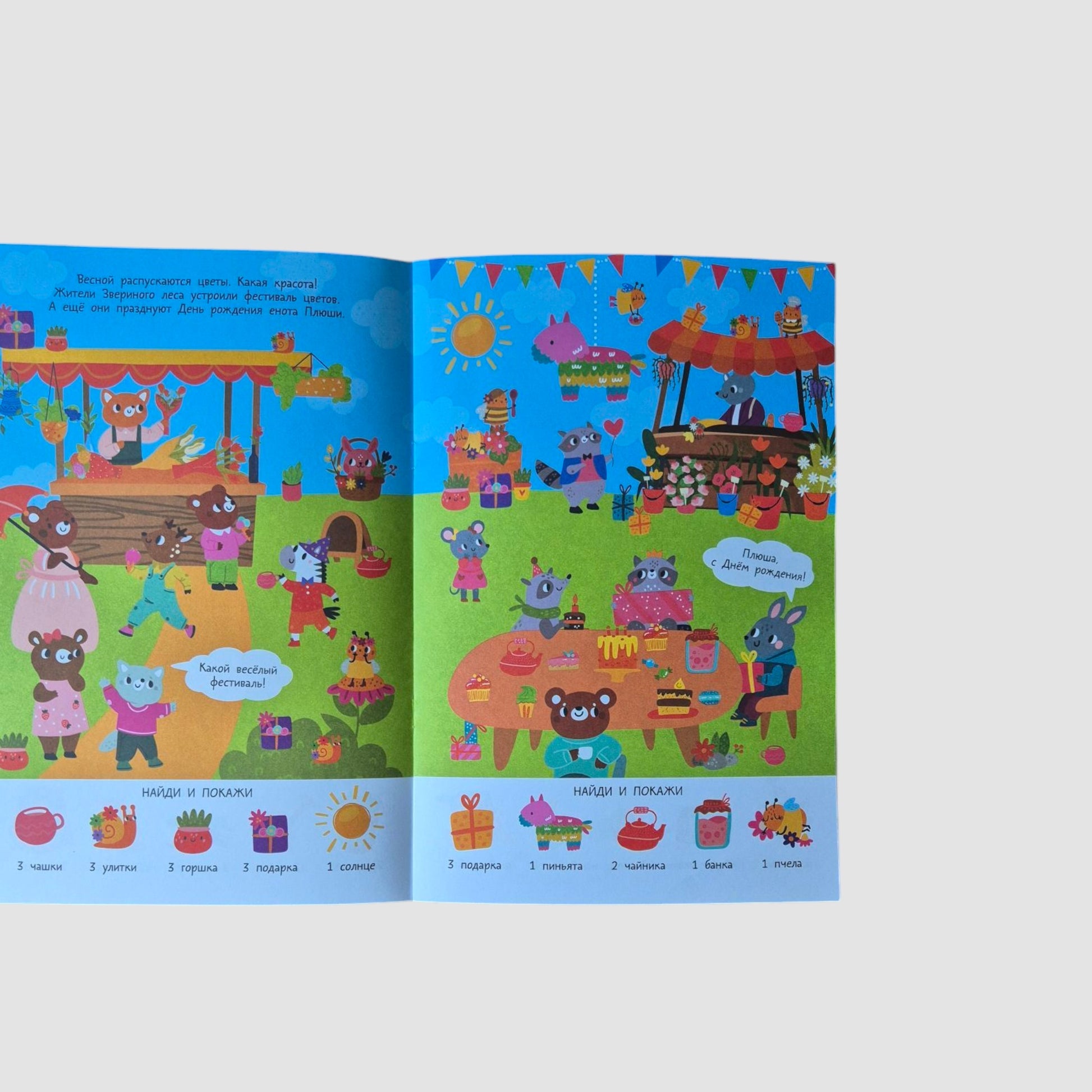 This is a colorful puzzle book that contains so many details that you can look at them endlessly! Such detail allows you to look at the picture in a new way every time: different weather, many seasonal phenomena, plants, trees, snow figures and much more!