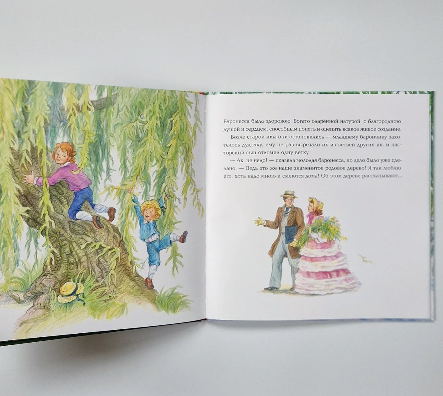 One day, a rich hunter, riding across a bridge, pushed a young shepherdess into the mud, shouting that everyone should know their place. Luckily, the girl managed to catch hold of a willow branch, but broke it off. A young peddler passing by picked up the shepherdess and stuck the broken branch into the ground, wishing that it would become a good pipe for the lords. The peddler became rich, bought the estate of a ruined gentleman and married the former shepherdess. Their descendant received the title of baron. The years passed, and after a hundred years, the baron's family almost forgot their ancestors. But one day, at a ball at the estate, a pipe carved from that very willow branch began to play...