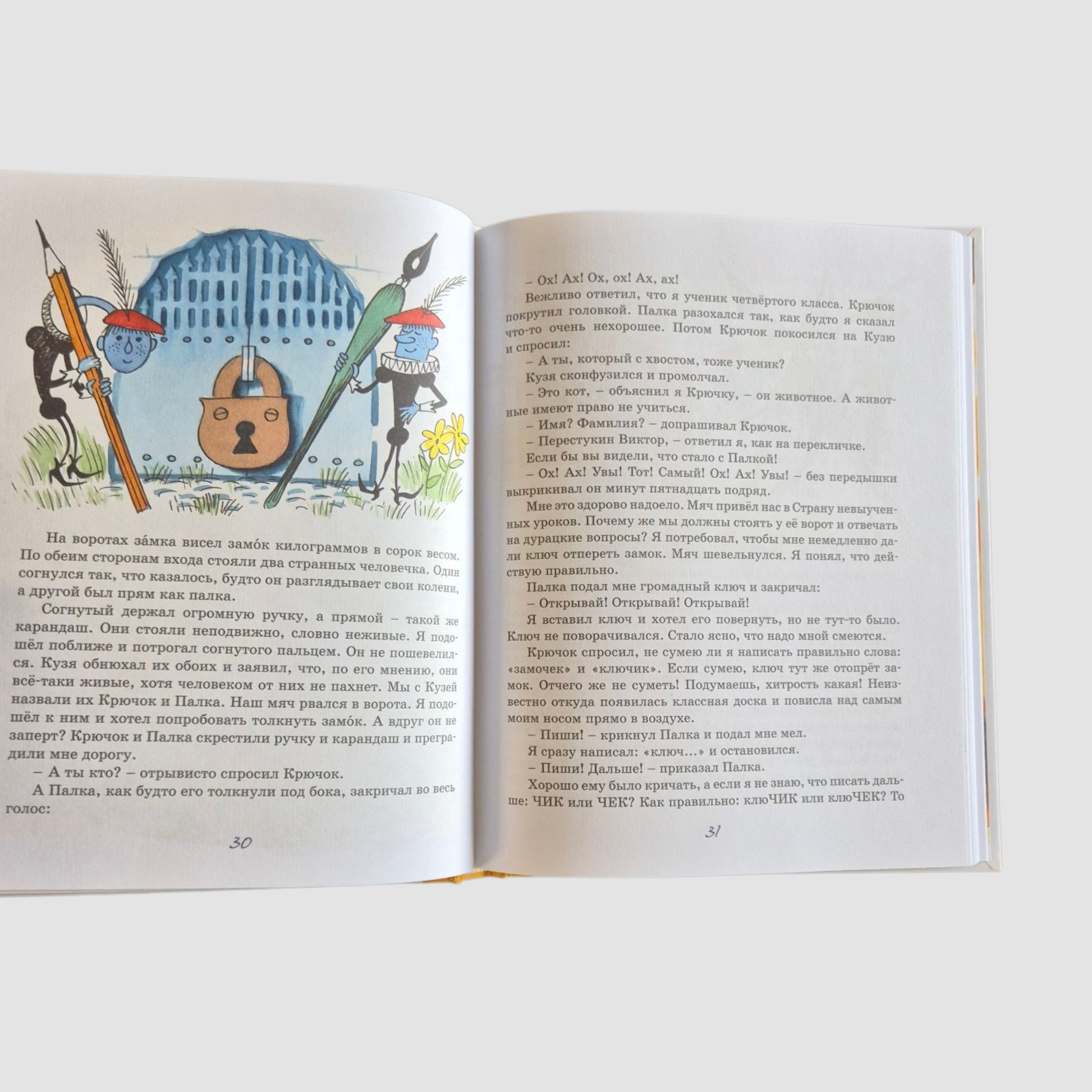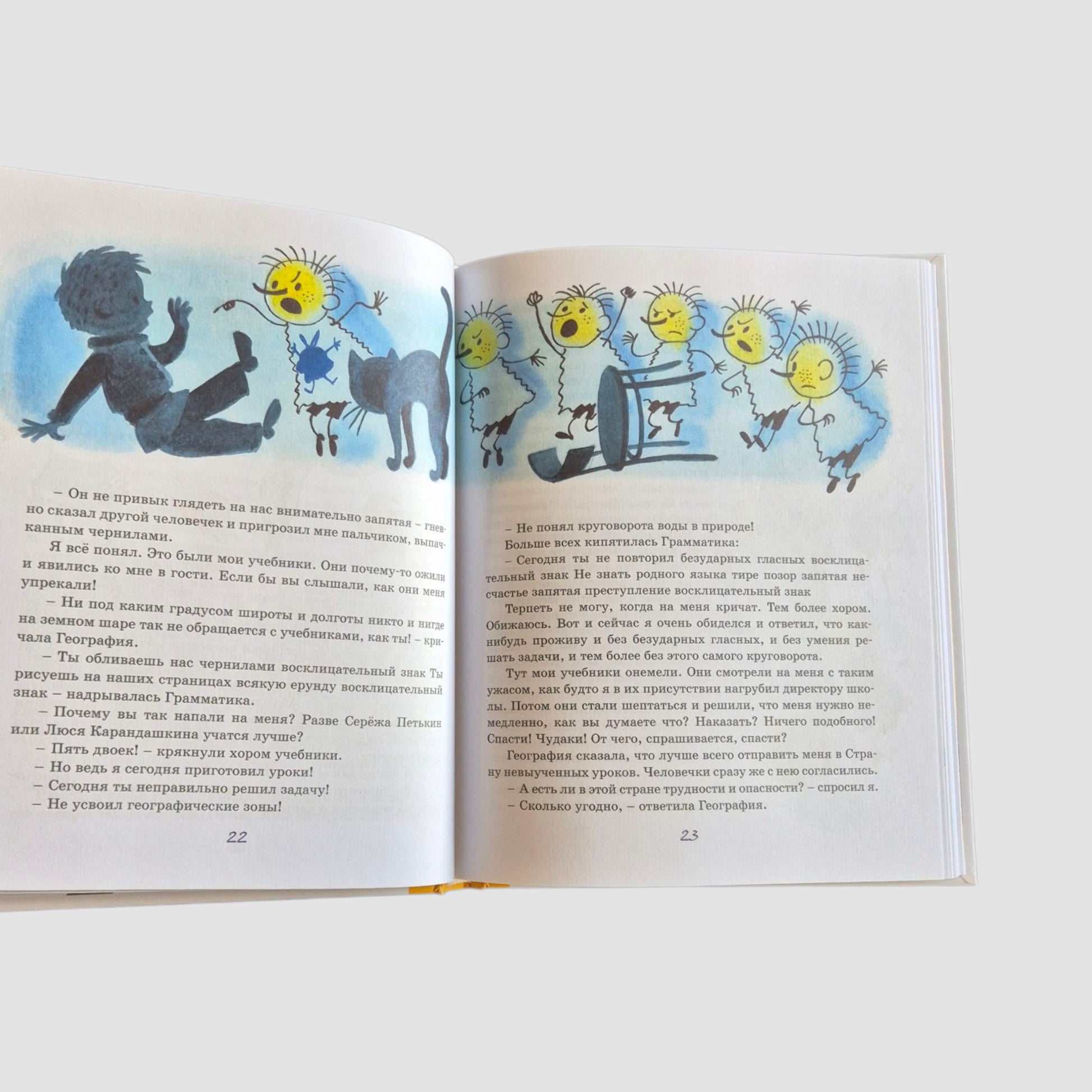 The hero of the story, fourth-grade student Vitya Perestukin, a poor student and a slacker who really didn't like doing his homework, had a magical experience - he somehow ended up in the Land of Unlearned Lessons. And here the boy had to face all the mistakes he made while hastily preparing his lessons. What should Vitya do? Correct his mistakes, of course! Otherwise, he won't be able to return from this magical land... The fairy-tale trilogy by Liya Geraskina about the adventures of Vitya Perestukin and his friends in the Land of Unlearned Lessons is loved by many generations of schoolchildren. The illustrations for the book were drawn by People's Artist of Russia Viktor Chizhikov, winner of numerous professional competitions, and holder of one of the most prestigious awards in children's literature - the H. C. Andersen Honorary Diploma.