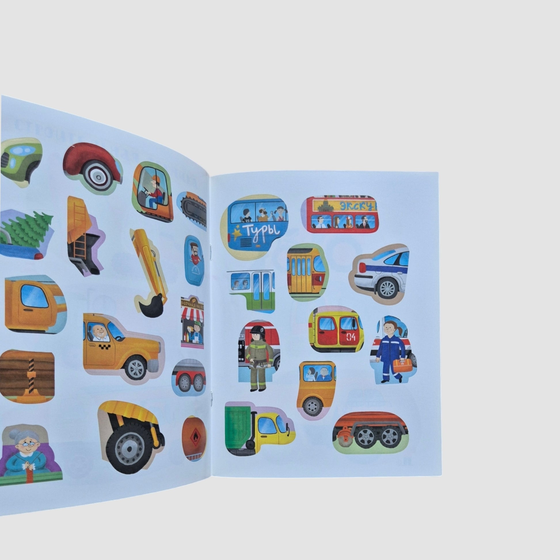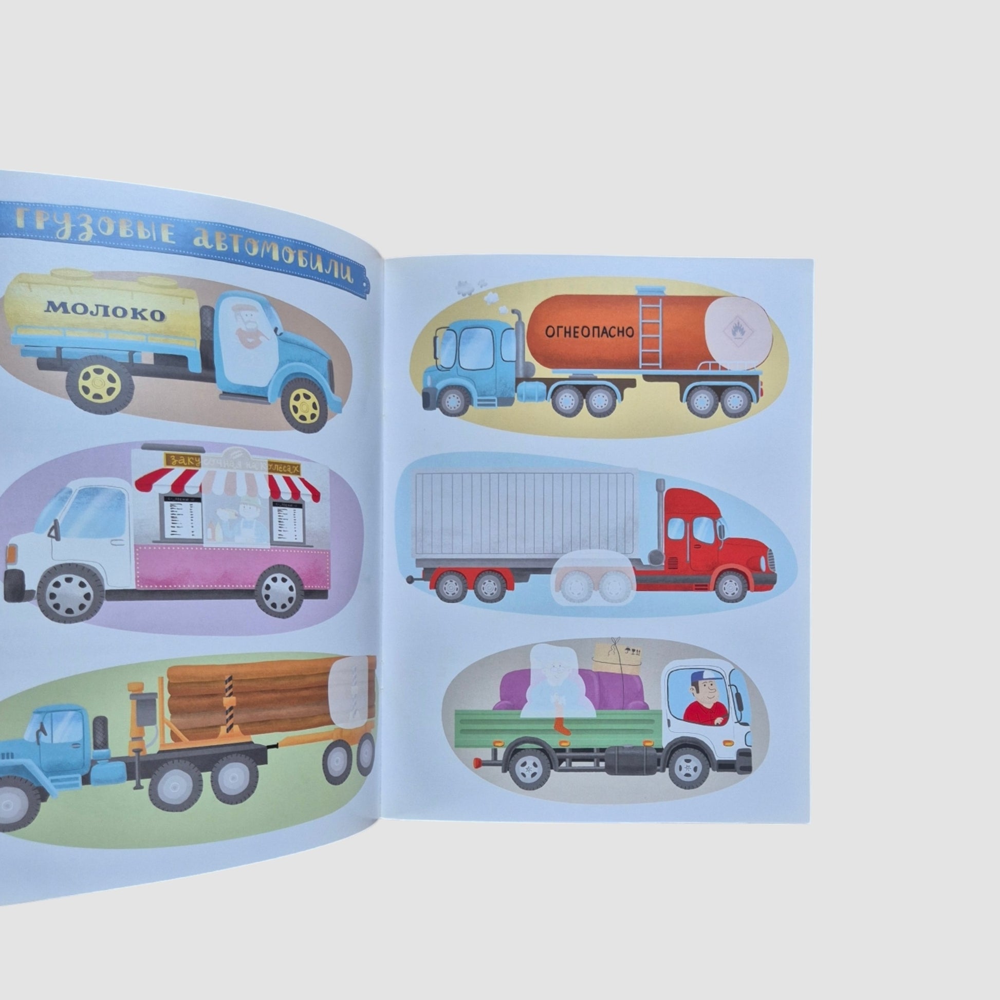 How many different cars rush along the city streets! A milk tanker and a food truck, a tractor and an excavator, a bus and a passenger car, a minibus and a dump truck - what kind of cars can you not meet on the roadway! The cheerful artist Alexander Golubev drew them so that you can immediately recognize your favorite car and get to know those that you have not yet met. And the most interesting thing is that for each car you need to find the missing part and glue it back in place!