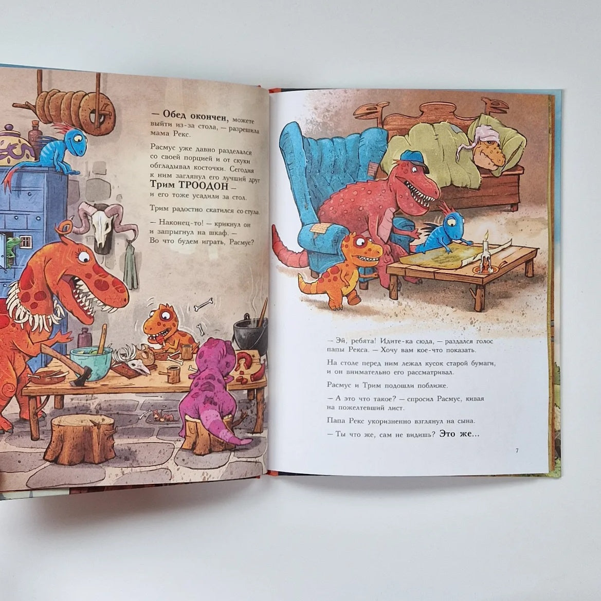The series of books about the adventures of dinosaur friends was written and illustrated by writer Lars Mäle and artist Lars Rudebjer. They created an entire country of Dinosauria, where something funny and unexpected awaits a child on every page. The book has a lot of dialogue, so it is perfect for reading aloud or role-playing with children from 4 years old.