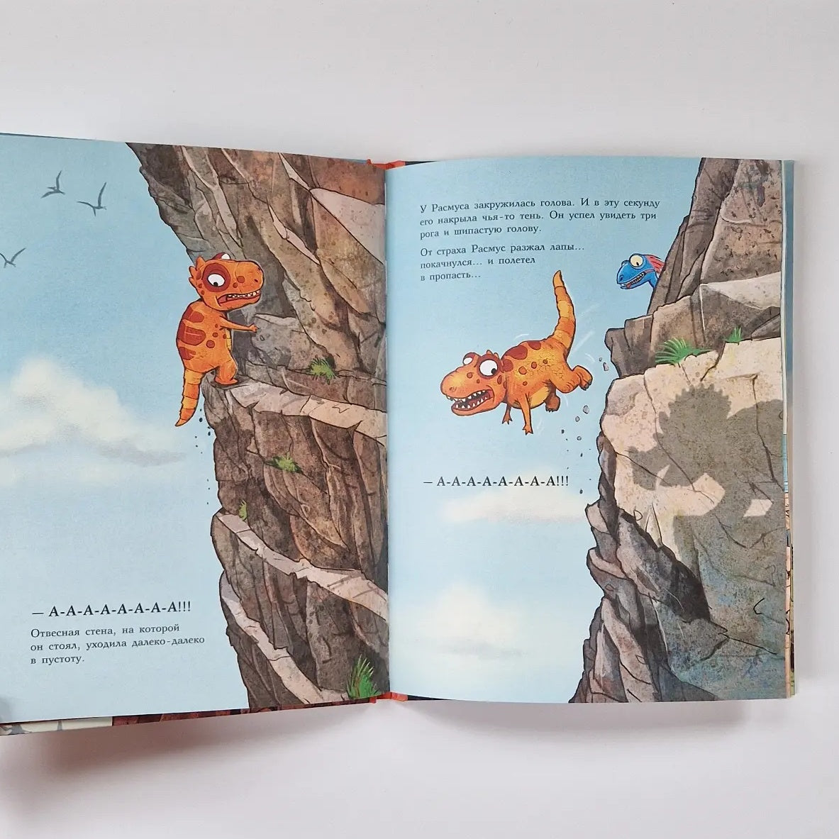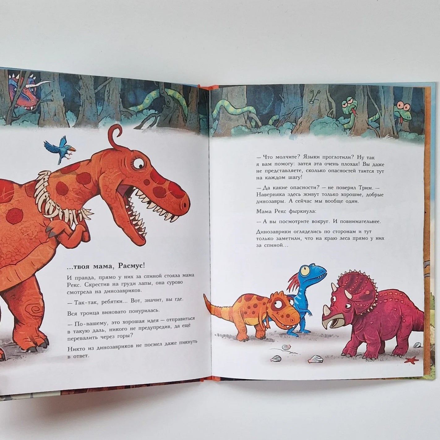 Each book in the Dinosaur Friends series tells the story of a day in the life of the tyrannosaurus Rasmus Rex and his best friend Trim Troodon. In the third book, Trim calls Rasmus to explore what lies north of Dinosauria, beyond the Rocky Mountains. Cowardly Rasmus is afraid that crocodile mosquitoes and other monstrosaurs live beyond the mountains, and does not want to leave home without asking. But the true adventurer Trim convinces him that there are only good, kind dinosaurs beyond the mountains. And that he and Rasmus will quickly run to the edge of the map, look beyond the Rocky Mountains and return immediately. No one will even know. But it does not work out quickly. Sheer cliffs, steep climbs and other dangers await the friends, and it is unknown how this trip could have ended if not for the vigilance of Rex's mother.