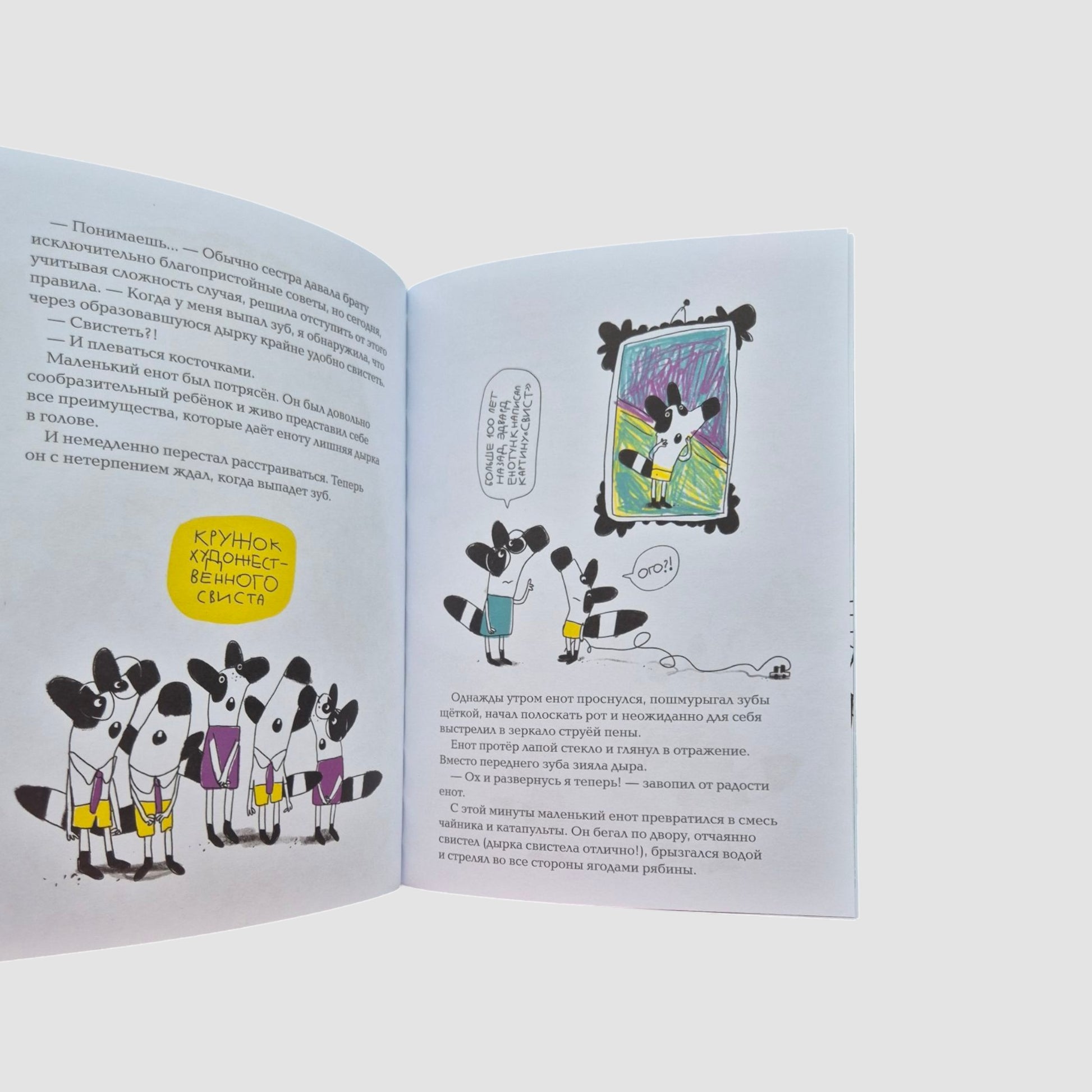 The little raccoon has new adventures every day. He tames a stubborn bicycle, runs like crazy and wanders in a labyrinth. Mom and Dad are worried: it seems their son has completely lost his grip! Only the raccoon's sister, as always, is able to find a way out of any situation and even a labyrinth.