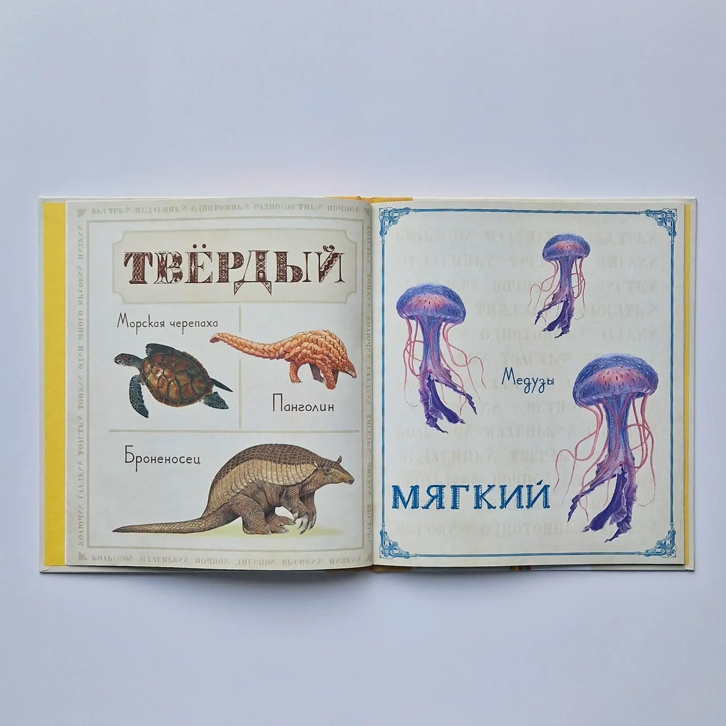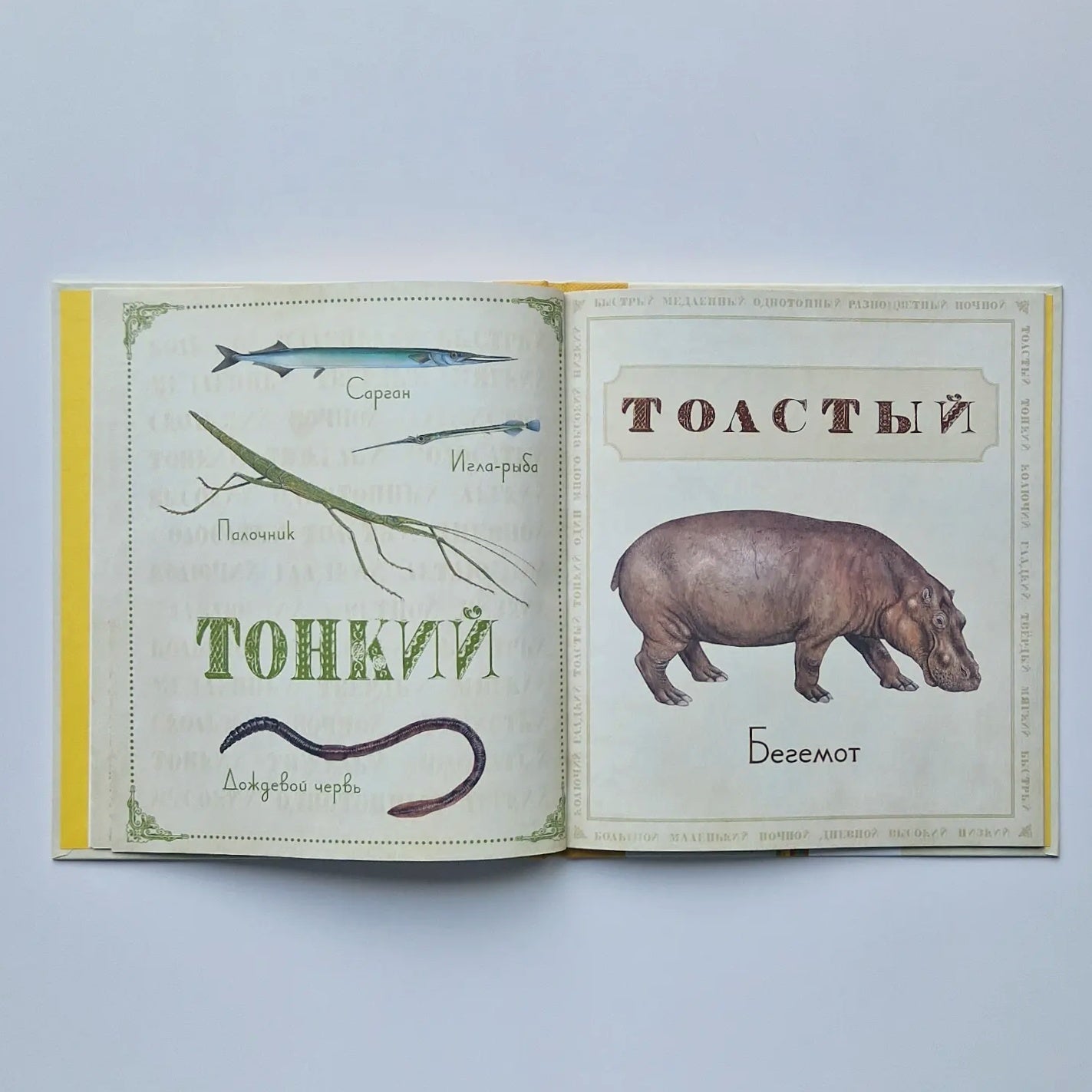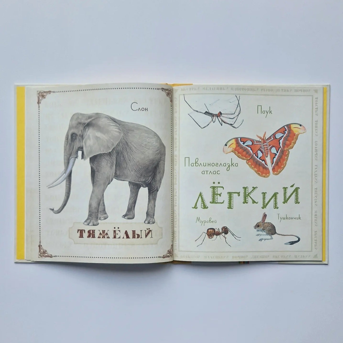 The incredibly beautiful illustrated educational book LIVING OPPOSITES will introduce your child not only to the opposite properties of objects, but also to the great diversity of the animal world. And in addition, it will give aesthetic pleasure to both the child and his parents. The richest collection of colorful images of animals! More than 100 stunning illustrations! A fascinating journey into the world of knowledge and beauty!
