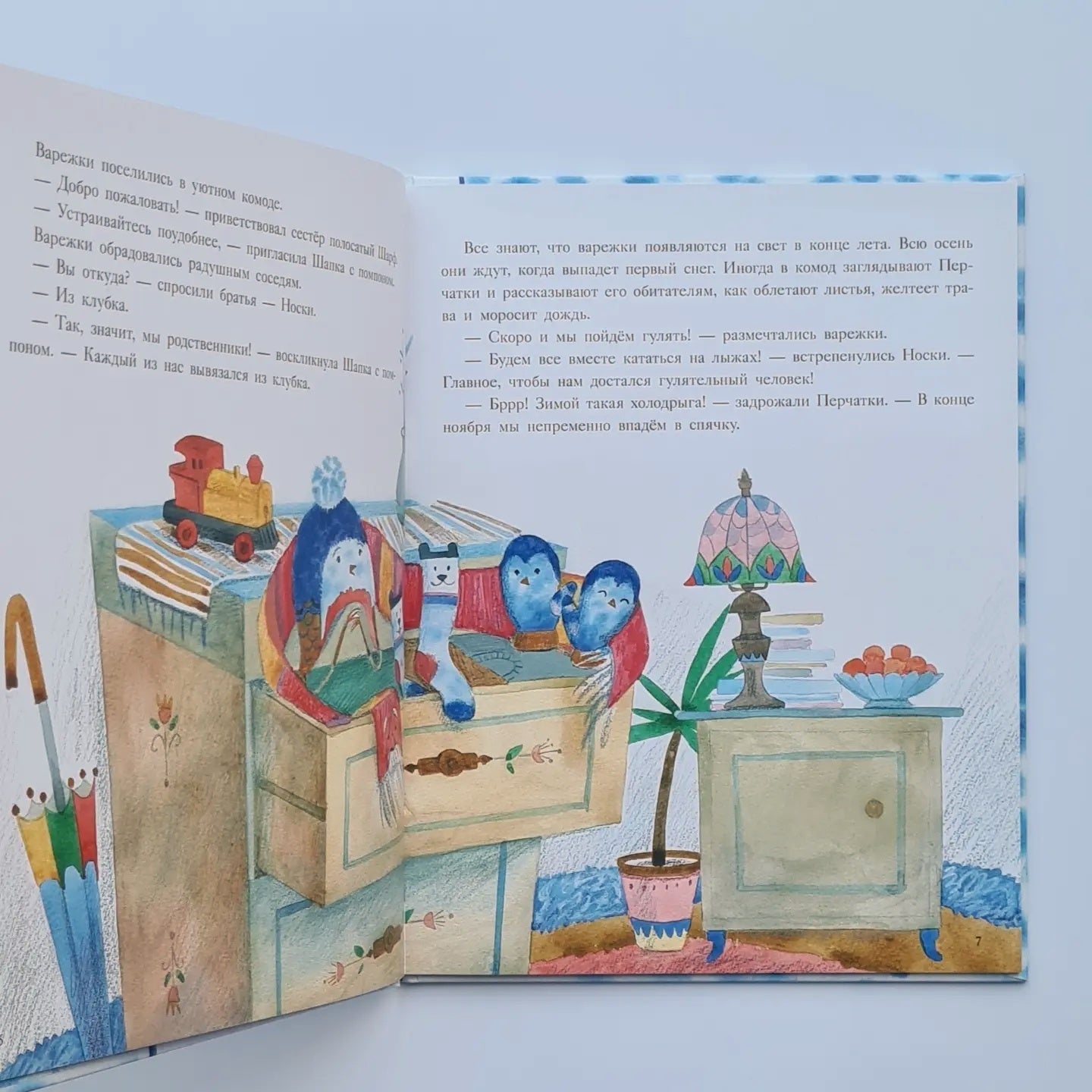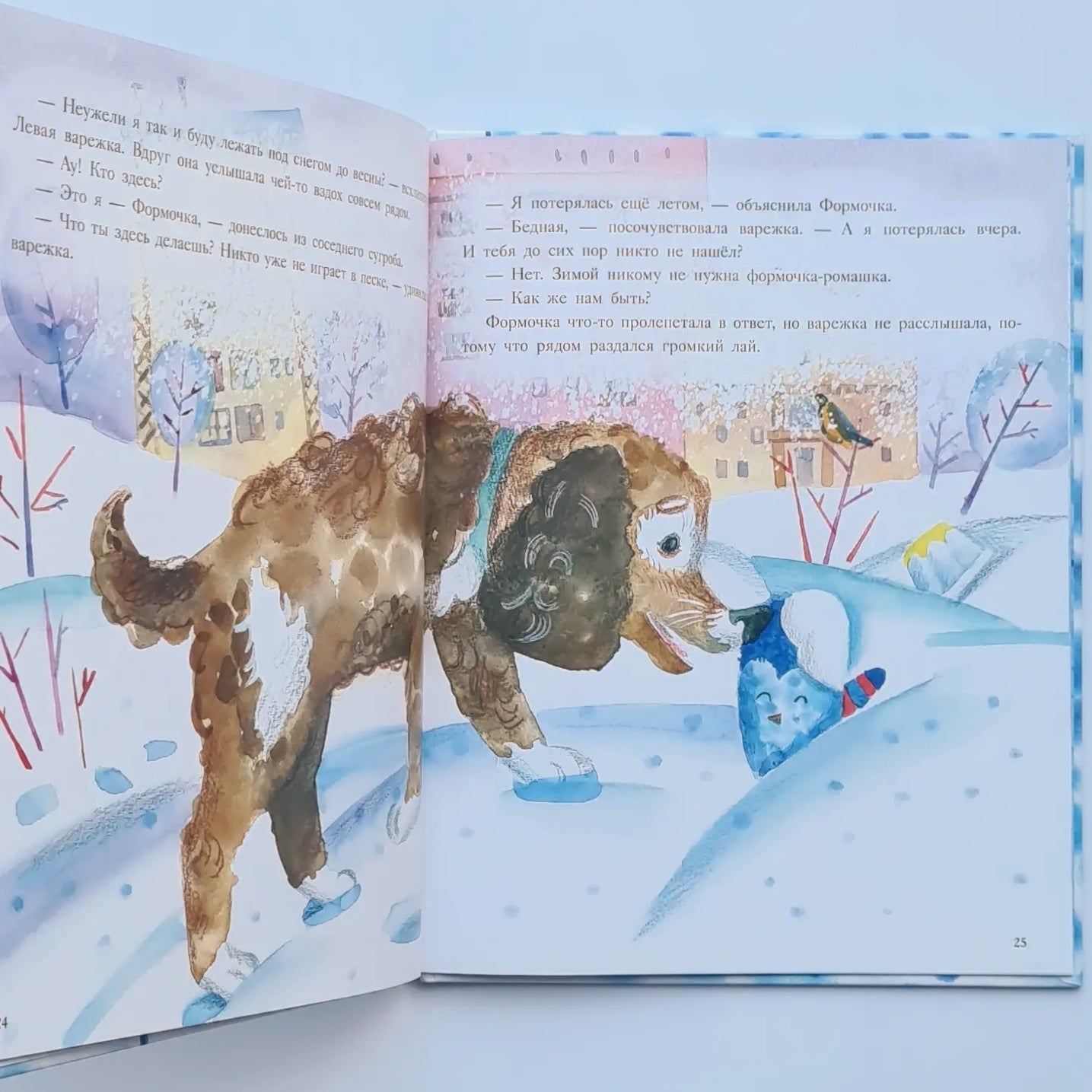 Two blue mittens are friendly sisters. They were born from a ball of soft wool, and then they were found by a new friend - a man with small hands who loves to walk! Together with him, the mittens happily play in the fluffy snow and explore the fascinating world around them. One day, the left mitten accidentally gets lost in a snowdrift, and the sister decides to find it as soon as possible...