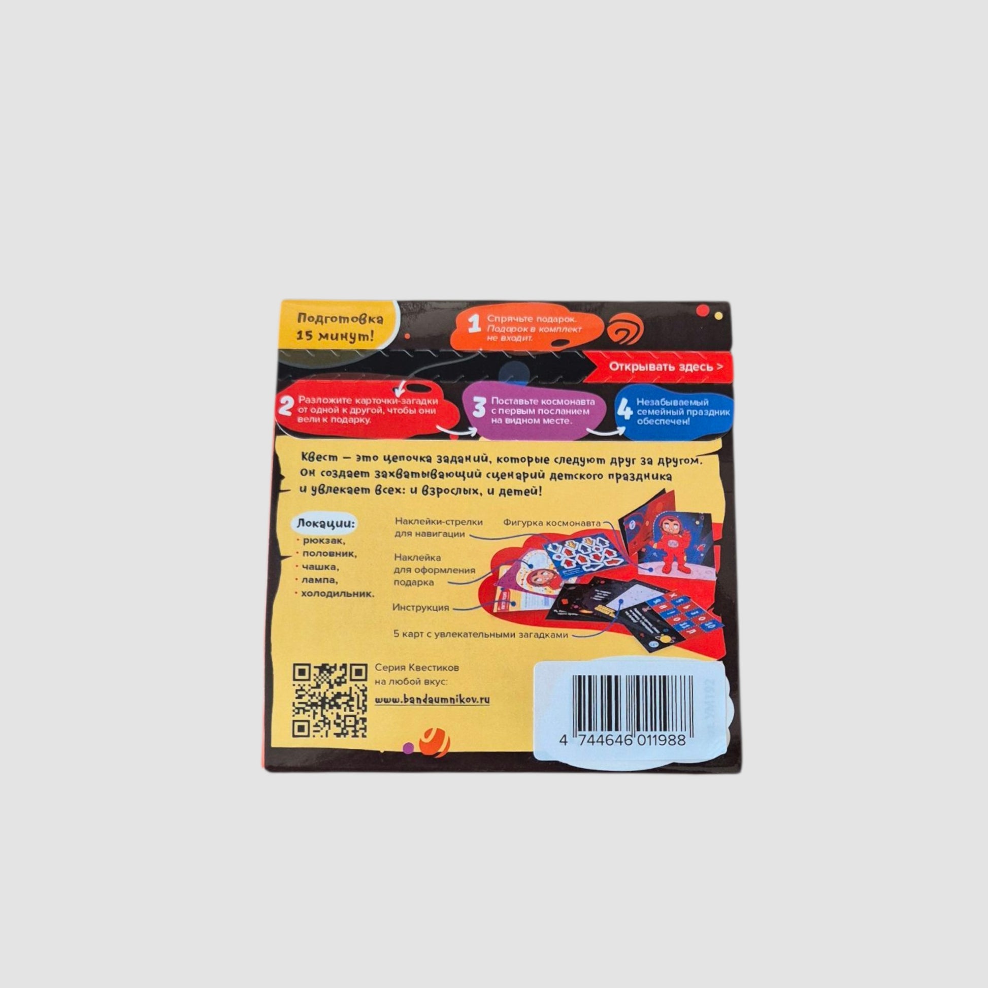 Inside there are 5 fascinating riddles that you will have to solve to find the gift: decipher the coordinates, go through the star path, find the missing object, decipher the words using a secret code or drawings-hints. The quest is a chain of tasks that follow one another. It creates an exciting scenario for a children's party and captivates everyone: both adults and children. And the organization will take only 15 minutes!