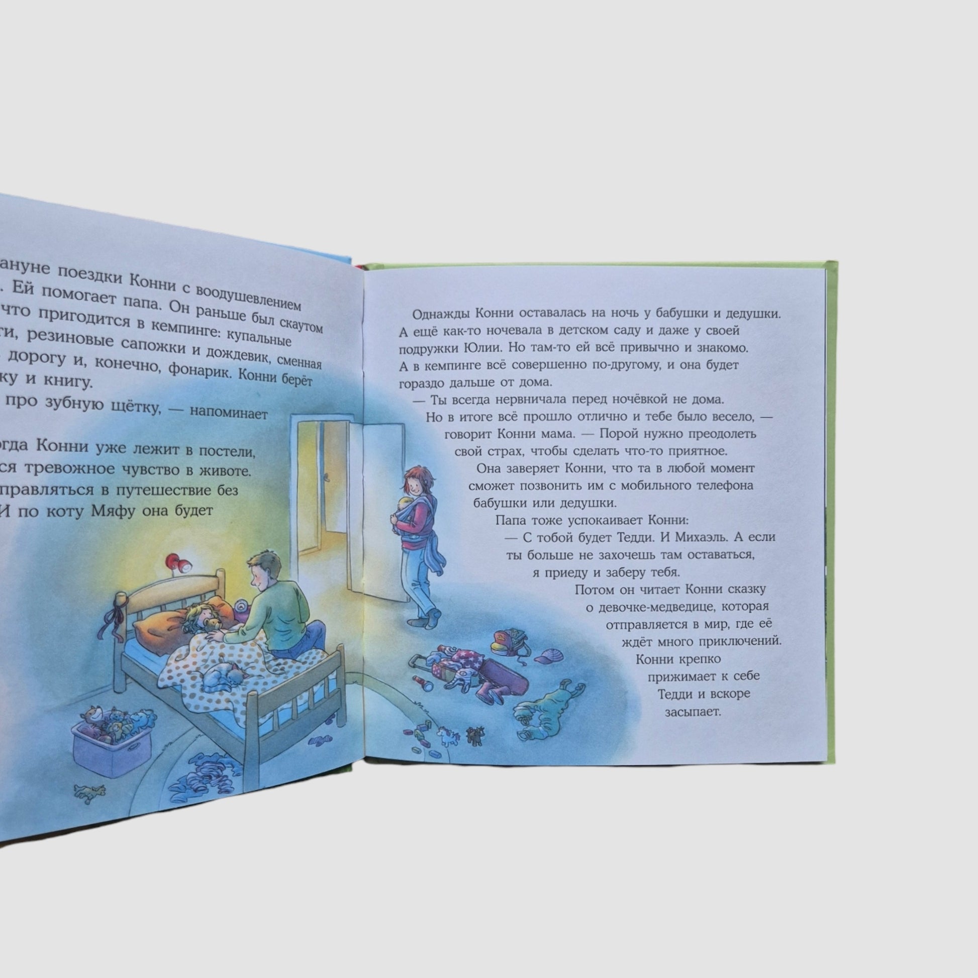 Connie goes on an exciting road trip with her grandparents and brother Michael in a camper van. She will have to face and overcome her fears many times: she is anxious before a long journey, as she has never been away from home for so long before; she learns to climb to the top of a rope pyramid; she goes out at night with Michael and her grandfather to look for a lost toy; she is afraid to leave her grandparents on a crowded bus.