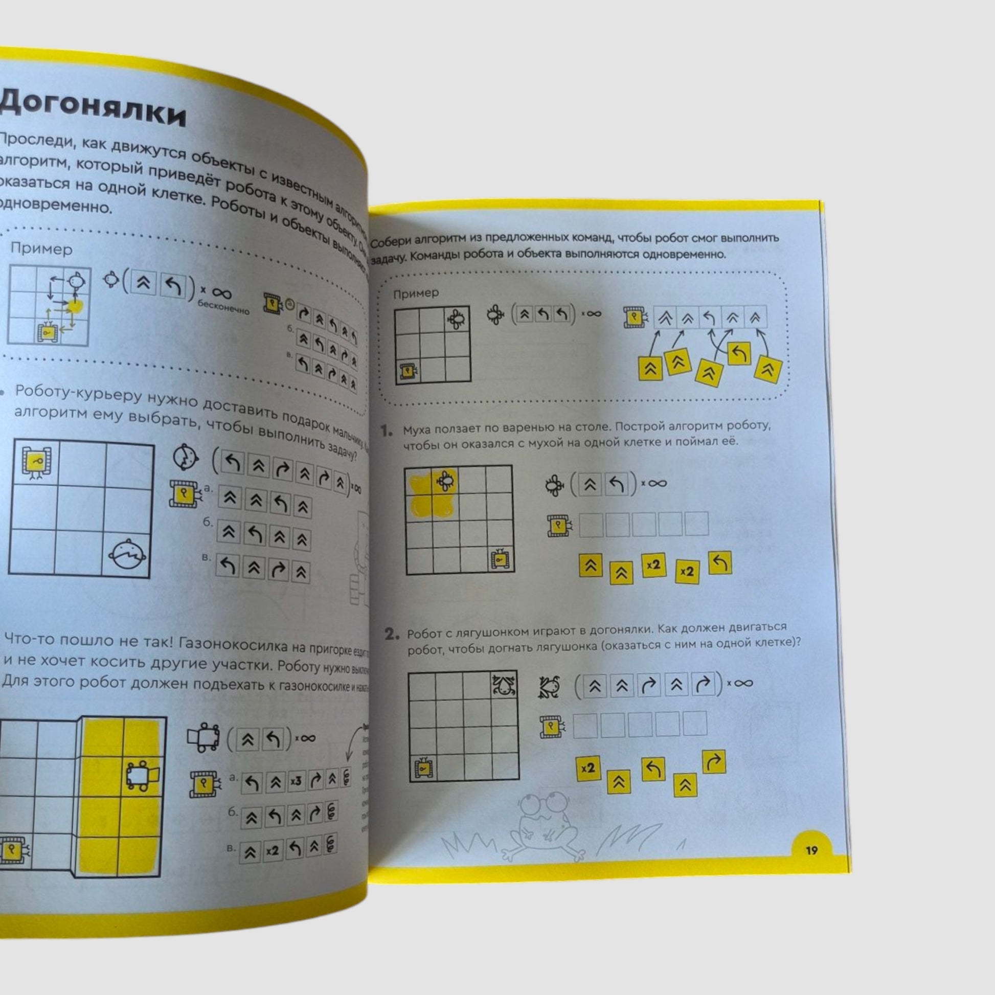 Not only programmers deal with algorithms! Developed logical and analytical thinking helps find effective solutions to problems: both in studies and in everyday life. In this notebook, children will have to identify patterns, act within the framework of given algorithms and create their own, as well as analyze the proposed situations.