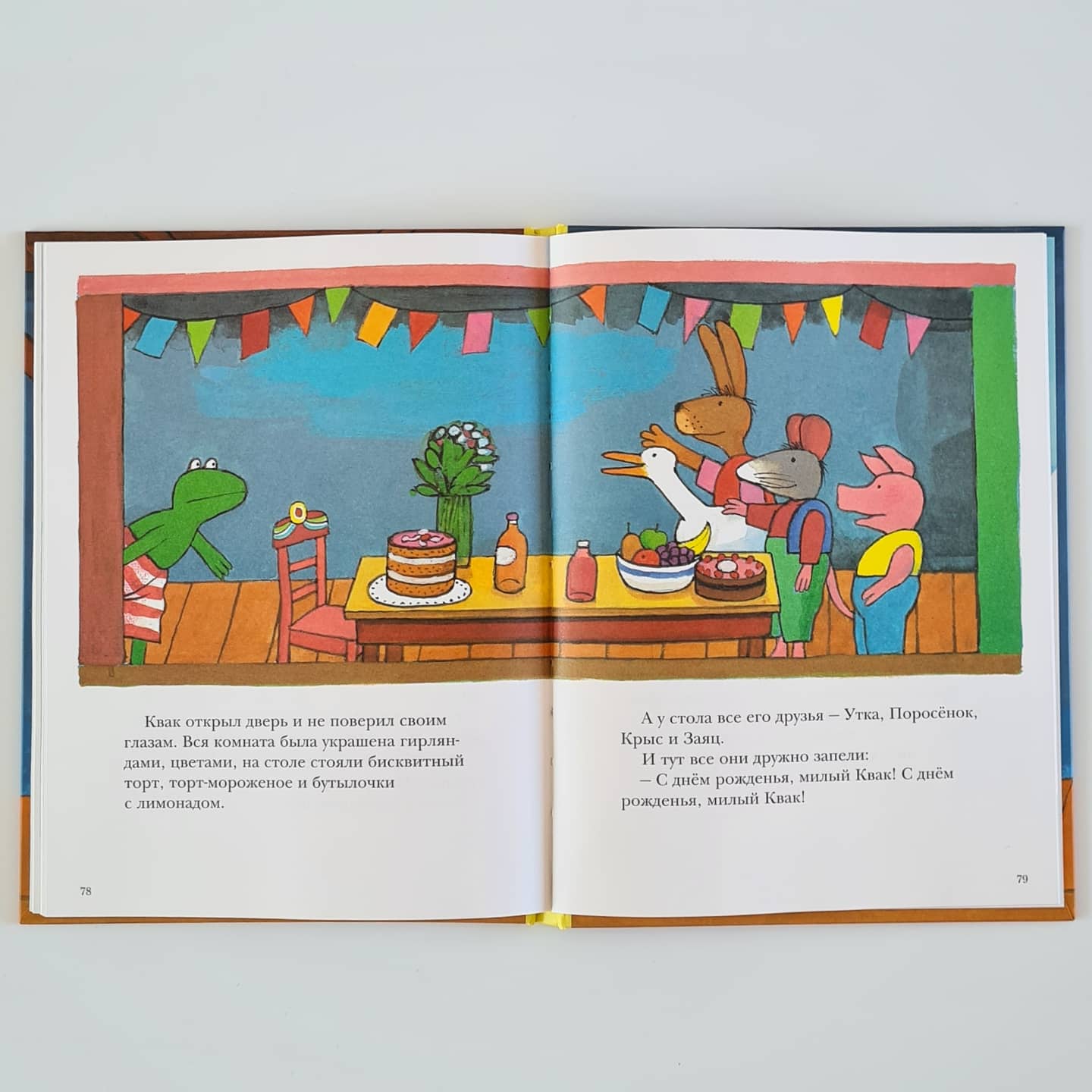 The stories about the little frog in funny striped pants have been published for 25 years in more than 40 languages around the world, are included in the compulsory reading program in many countries and are rightfully recognized as masterpieces of children's literature. This success is not accidental, because the books about the frog Quake have all the necessary components of ideal children's literature: a charming main character living in a cozy house; the main character's best friends, with whom you will not get bored; dynamic plots with unexpected twists; lively dialogues and humor understandable to children.