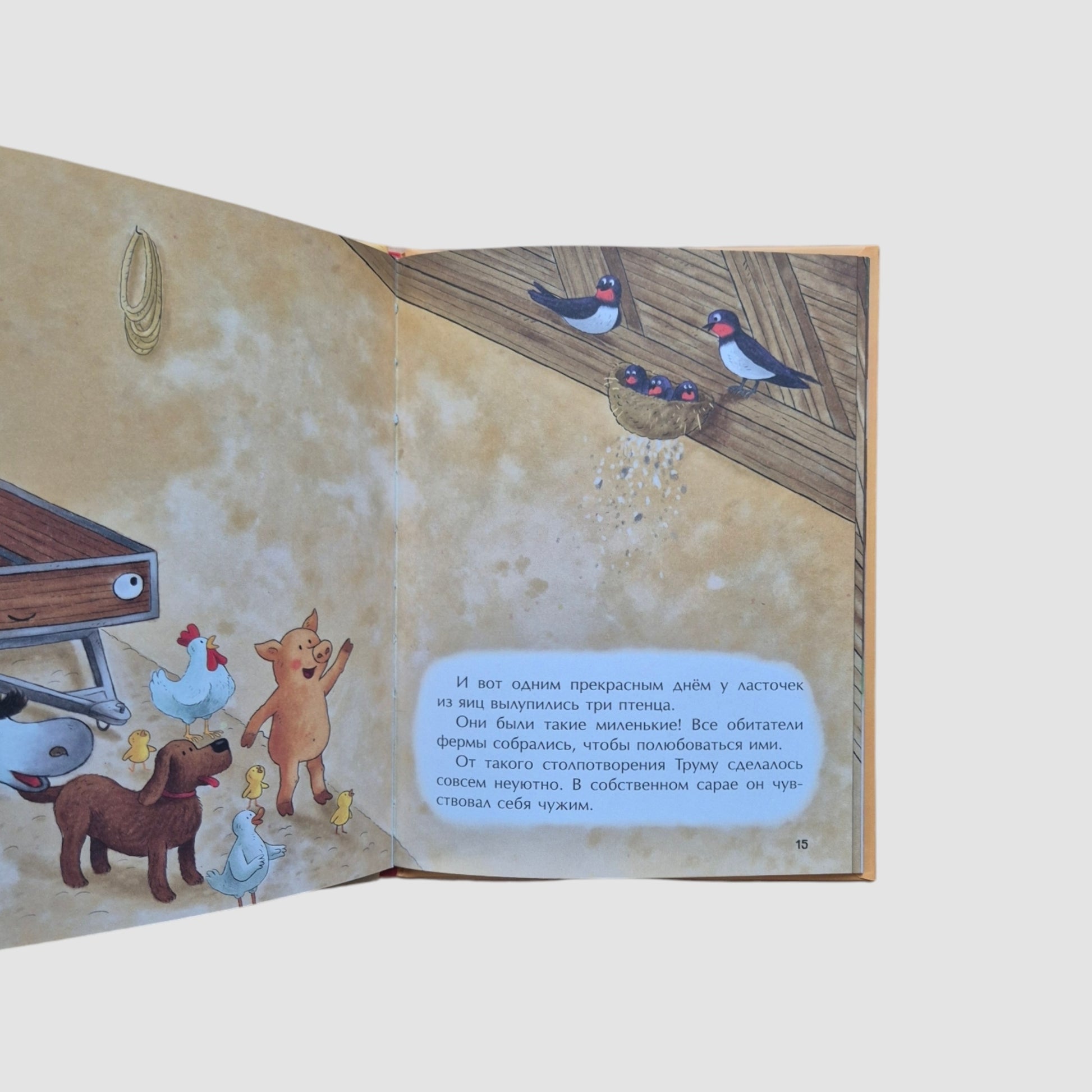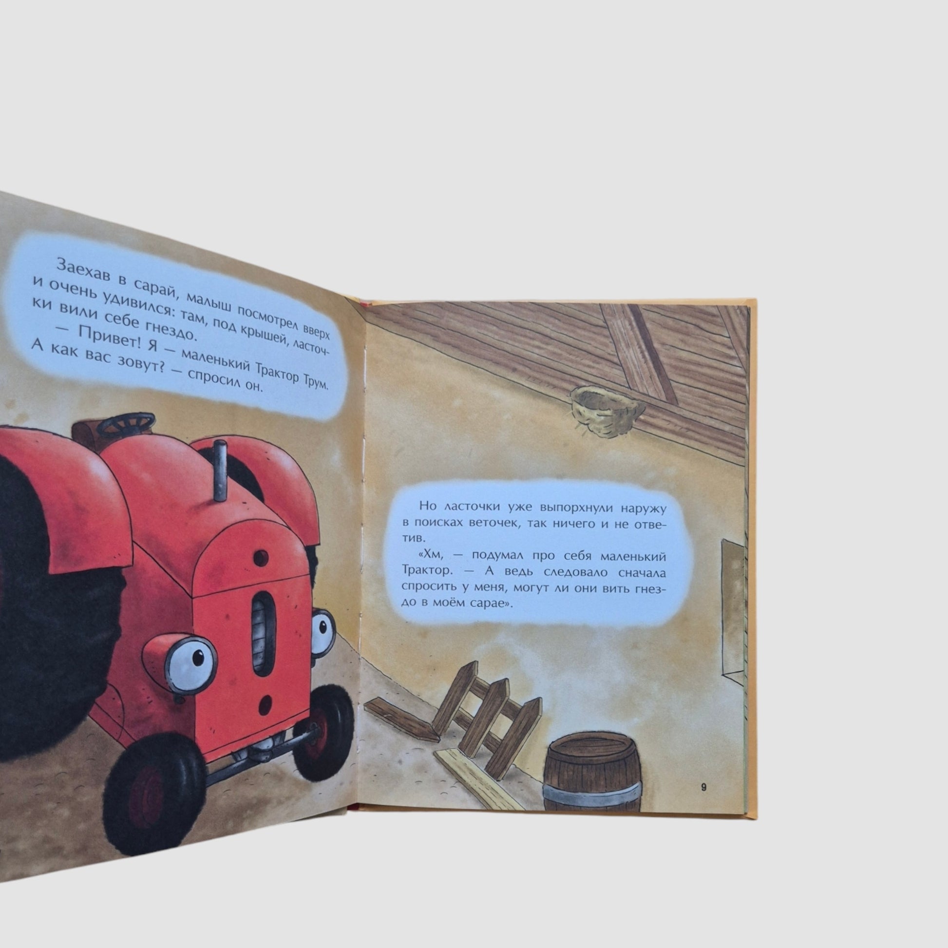 One day, a small red Tractor drove into his barn and saw that swallows had settled in it. The birds were building a nest, not paying attention to the owner and not even asking his permission.
