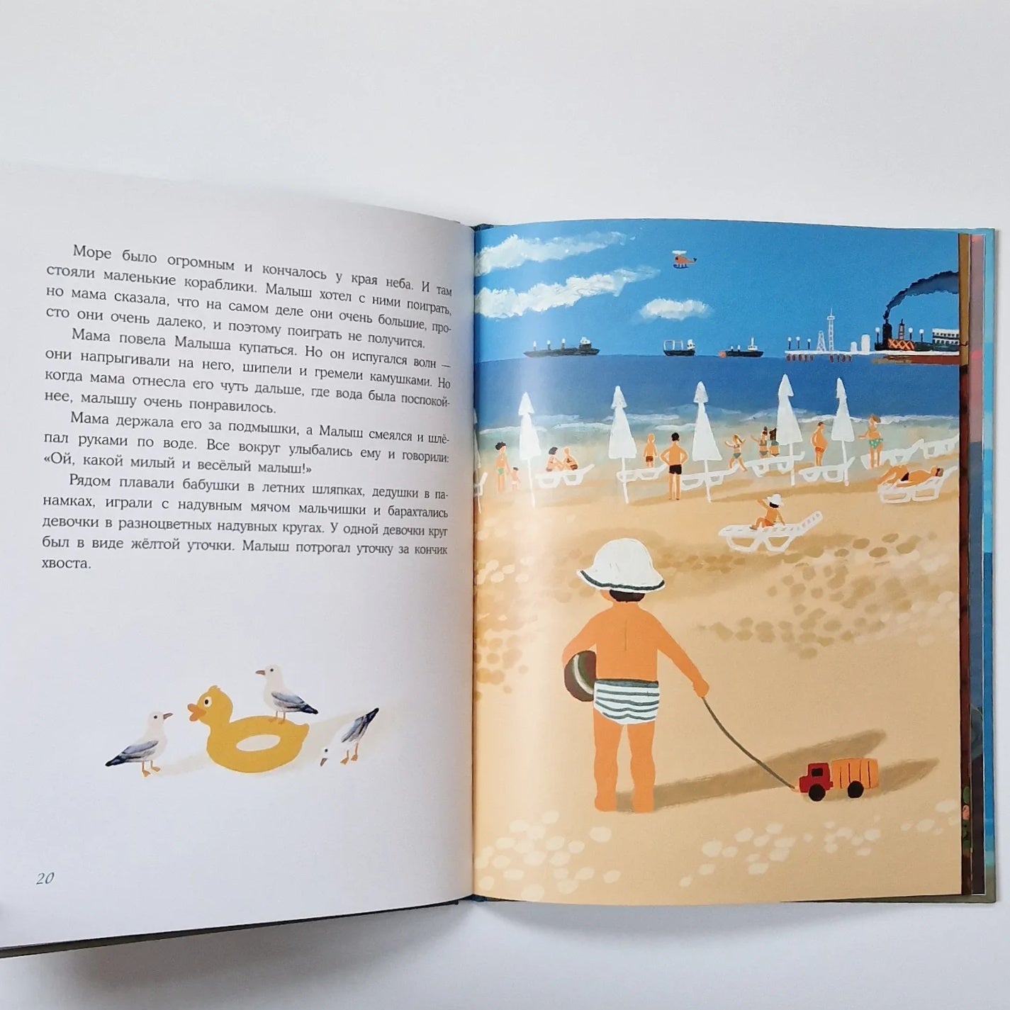 When Malysh was one and a half years old, his mother decided to take him to the sea. The train was a lot of fun! Malysh looked into every compartment, met all the passengers in the carriage, and during a long stop he managed to look at the train from the outside. But the most interesting thing began when Malysh, Malysh, grandma and grandpa arrived in the city of Tuapse. Malysh learned something new every day and was absolutely delighted. After all, it’s so great to walk around a southern city, walk barefoot on hot pebbles, swim in the warm sea and eat juicy watermelons!