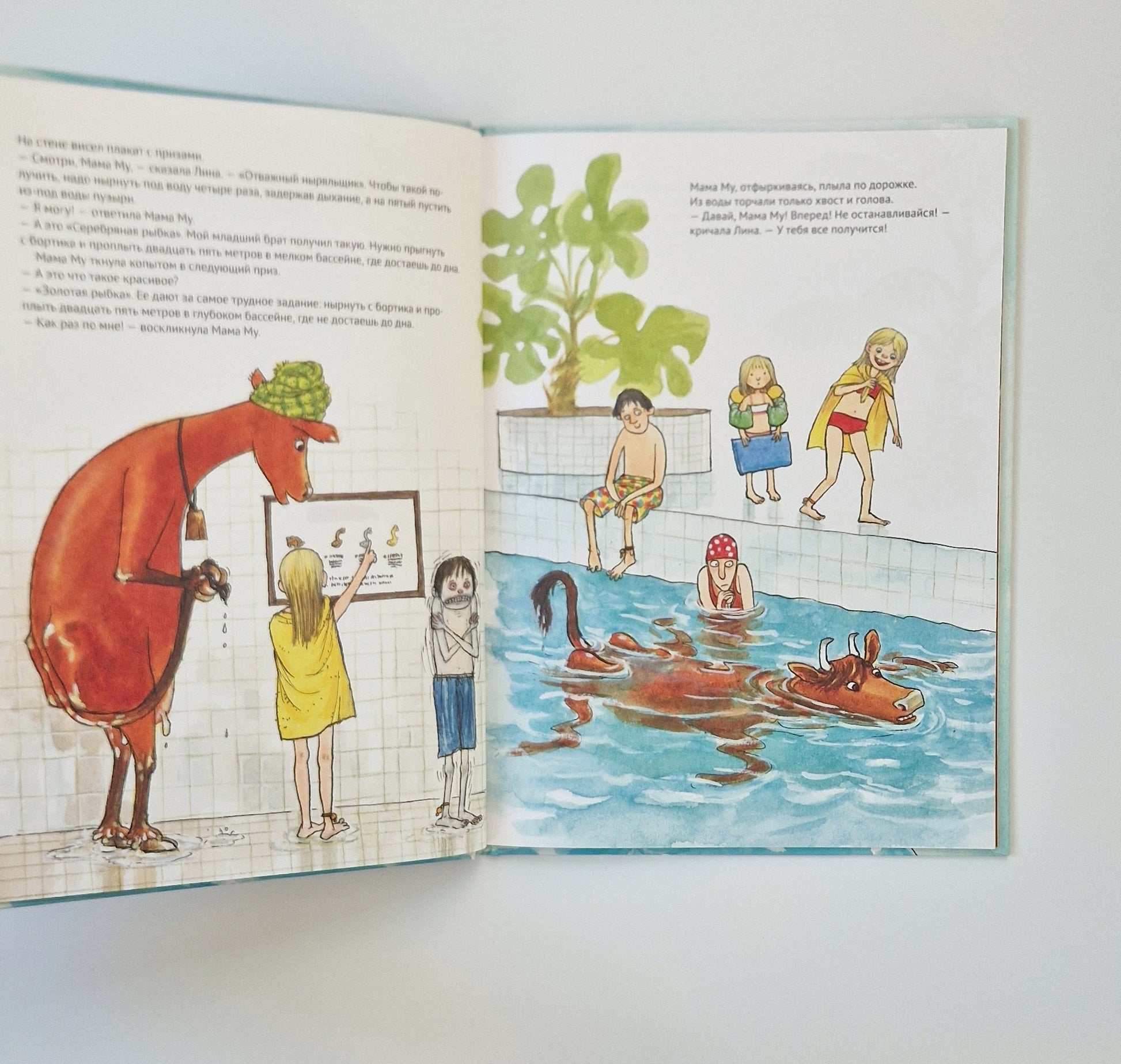Mama Moo loves to try new things. This time she goes to the pool and gets a prize. Her friend Krax is afraid of water and can't swim, but he wants a prize too. What to do? There is a way out: you just need to remember that everyone has their own strengths and weaknesses.