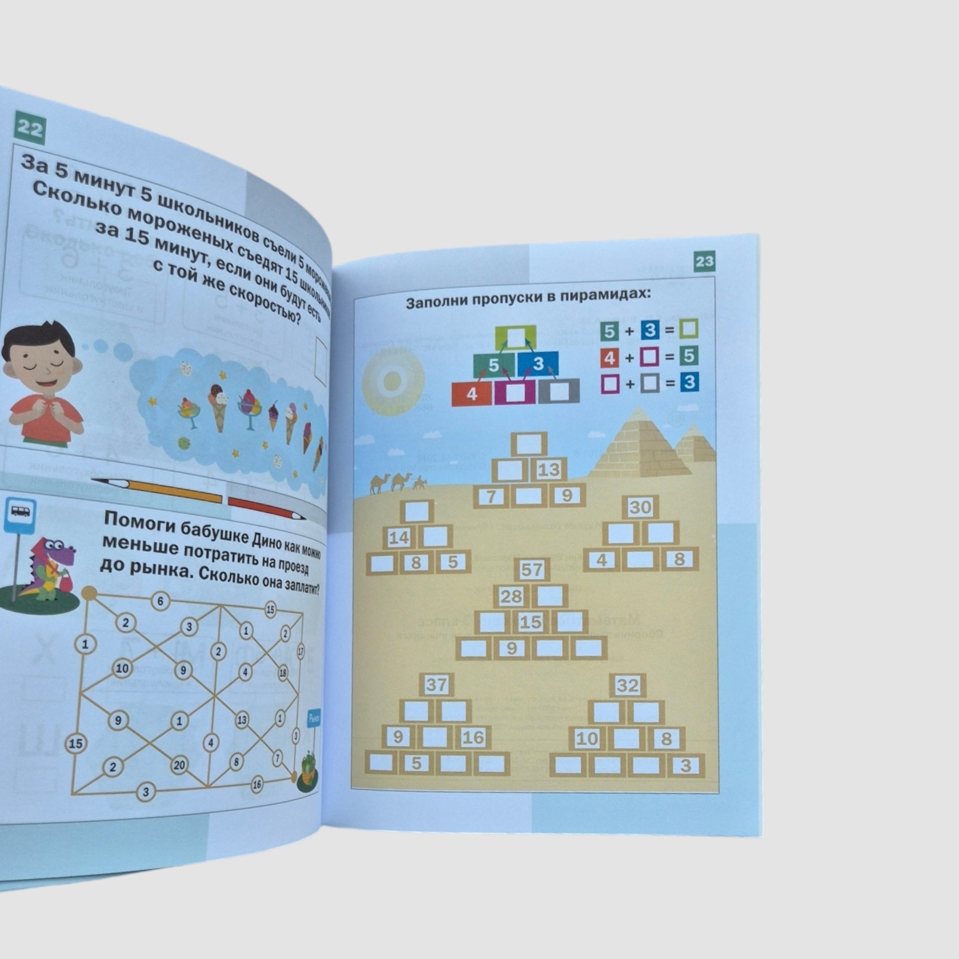 This notebook is a prize for those who solved the "PLUS" Olympiad. This notebook contains problems similar to those that were in our Olympiads in December 2015, February and April 2016. There are problems about palace doors and Greek numbers, about caves and shadows of towers. And there are new problems in this notebook that you have not encountered yet. Perhaps even adults will not be able to cope with all these problems and find all the possible solutions. Can you decipher codes and solve problems about carpets? Can you come up with your own problems with matches? Have you figured out how to beat the sage? We hope that these problems will please you.