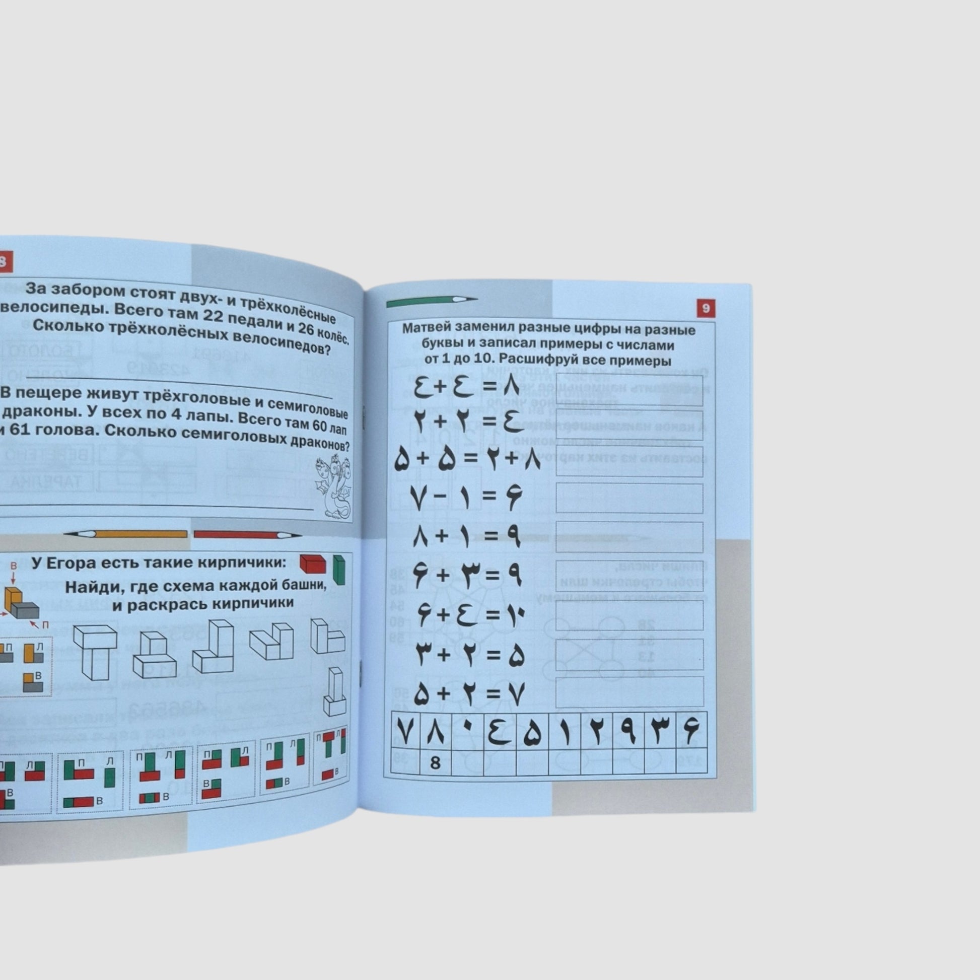 This year, the Plus Olympiad will be held, and we invite you to take part in it. In this book, you will find tasks that were at the Plus Olympiad last year - for example, with rugs and garland patterns. And then there will be new tasks - one more difficult than the other! On the pages of this notebook, encrypted letters and numbers, multi-headed dragons, cleverly broken chocolates and many other interesting things await you. Having mastered this notebook, you will become a master of laying carpets and a real specialist in counting candies. But will you be able to find the correct cube layouts and guess who lives on Uncle Grisha's farm? Some tasks are really difficult, but we are sure that you will overcome them.