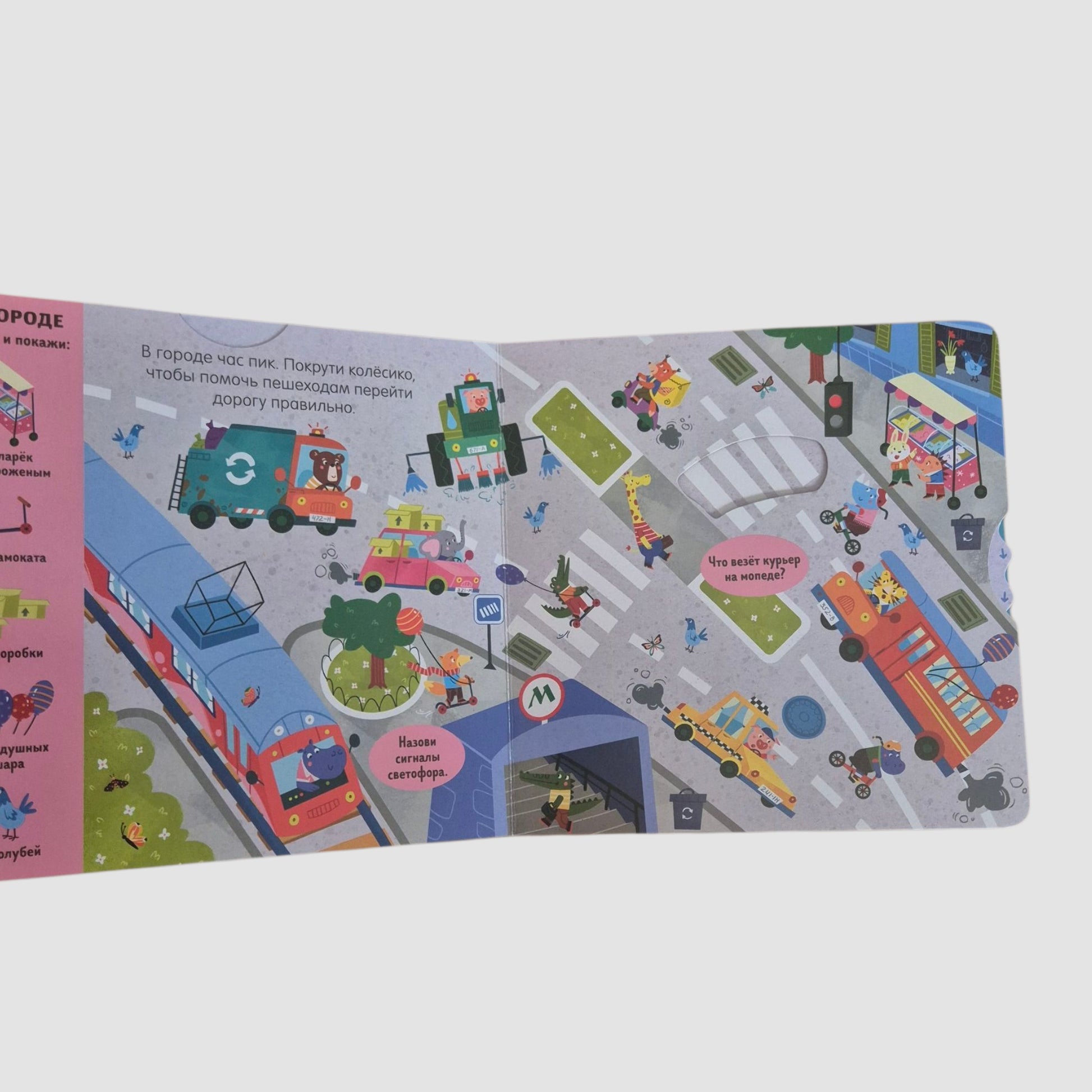 Интерактивная книжка с подвижными элементами для развития мелкой моторики и любимой игрой «найди и покажи» на каждом развороте.