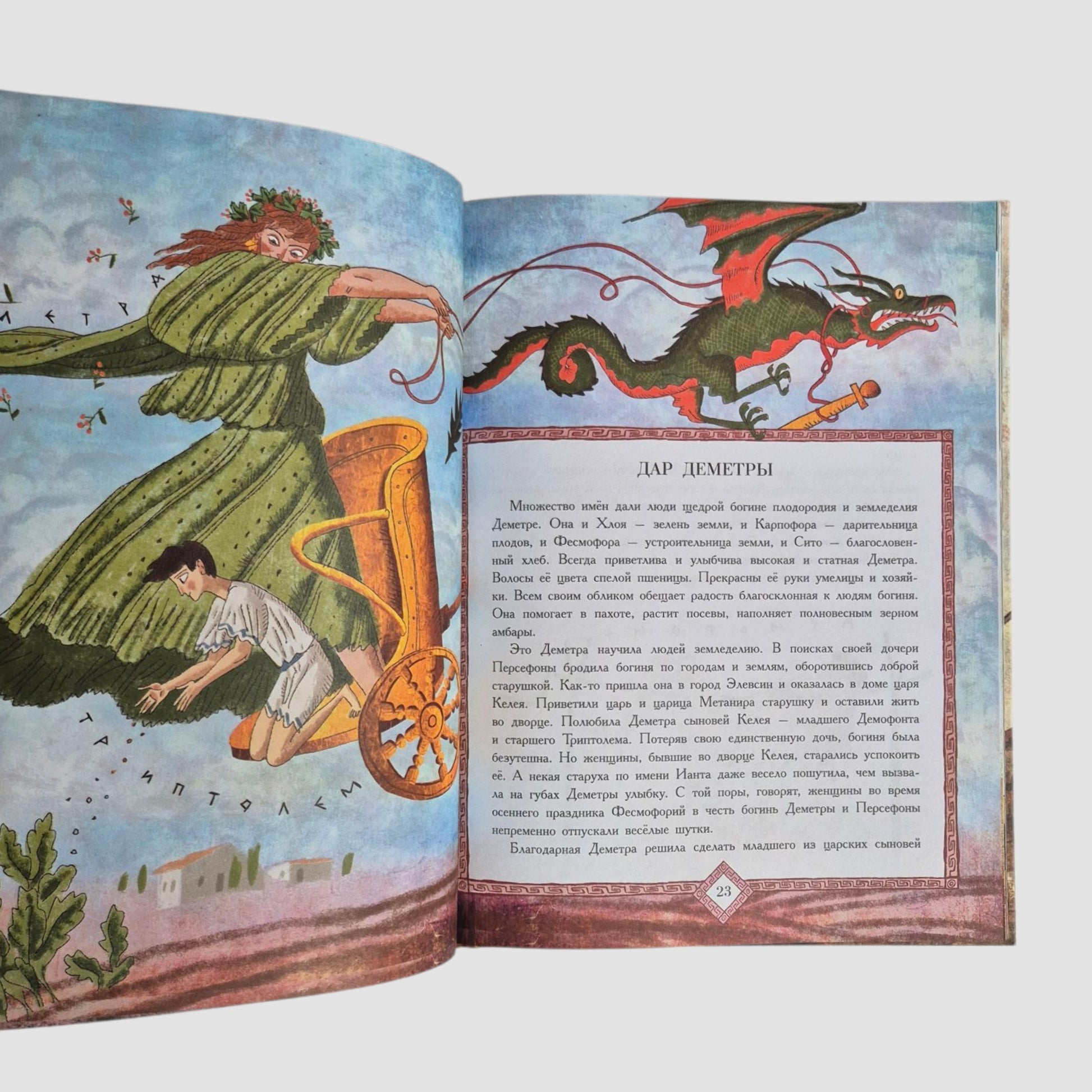 В книге собраны самые знаменитые мифы Древней Греции в пересказе Л. Яхнина - известного писателя, поэта и переводчика. В сборнике вы найдёте мифы о сотворении мира, о знаменитых богах и богинях, а также об отважных подвигах древнегреческих героев, которые не боялись бросить вызов самим "олимпийцам". Неповторимые, запоминающиеся иллюстрации нарисовал художник-постановщик анимационного кино и иллюстратор книг Сергей Гаврилов. За свою работу он получил высшую награду на конкурсе "Образ книги-2025" в номинации "Лучшие иллюстрации к детской и юношеской литературе".