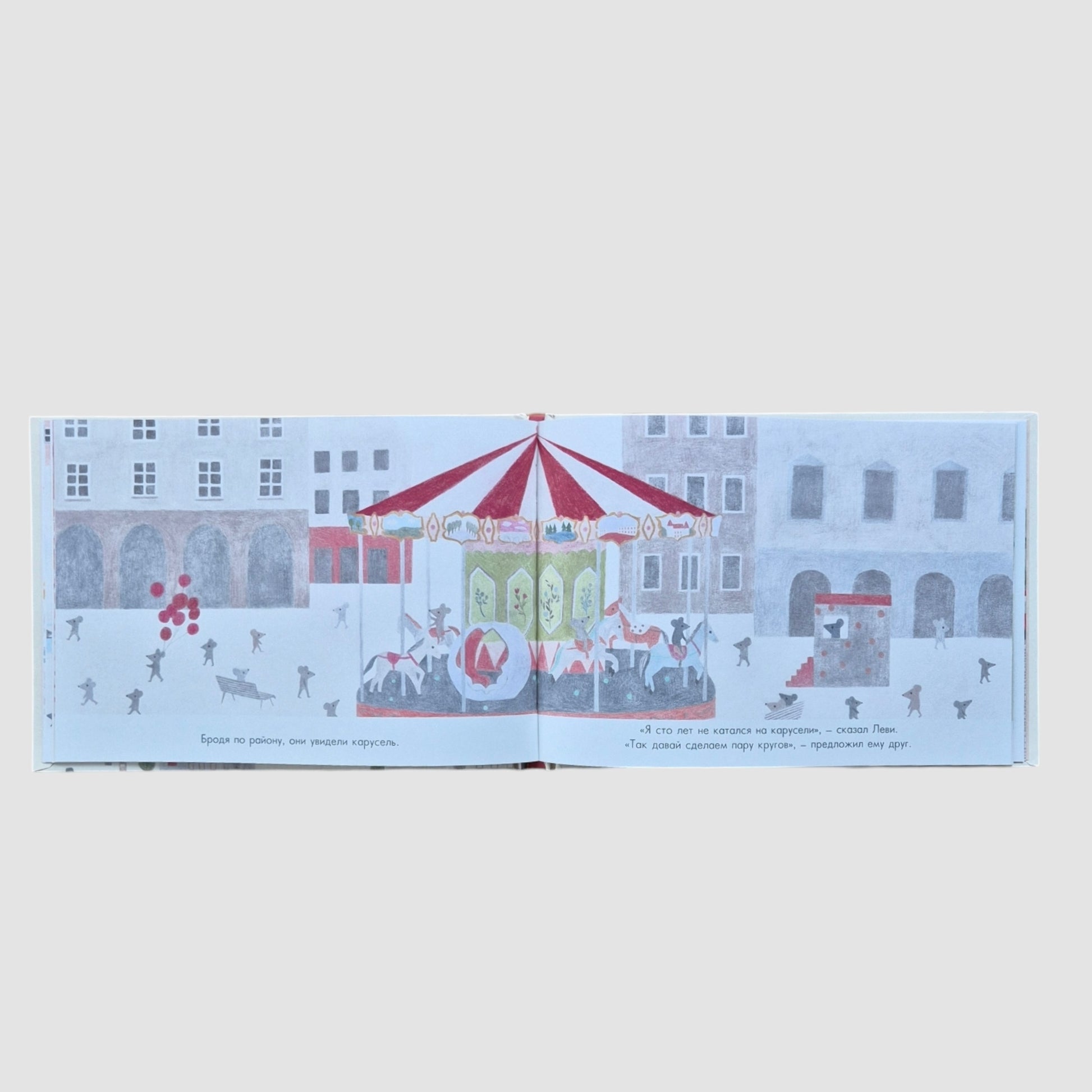 The friends begin their adventure by visiting a museum, then riding a carousel, stopping at an ice cream parlor, strolling through a park, and even climbing a Ferris wheel.