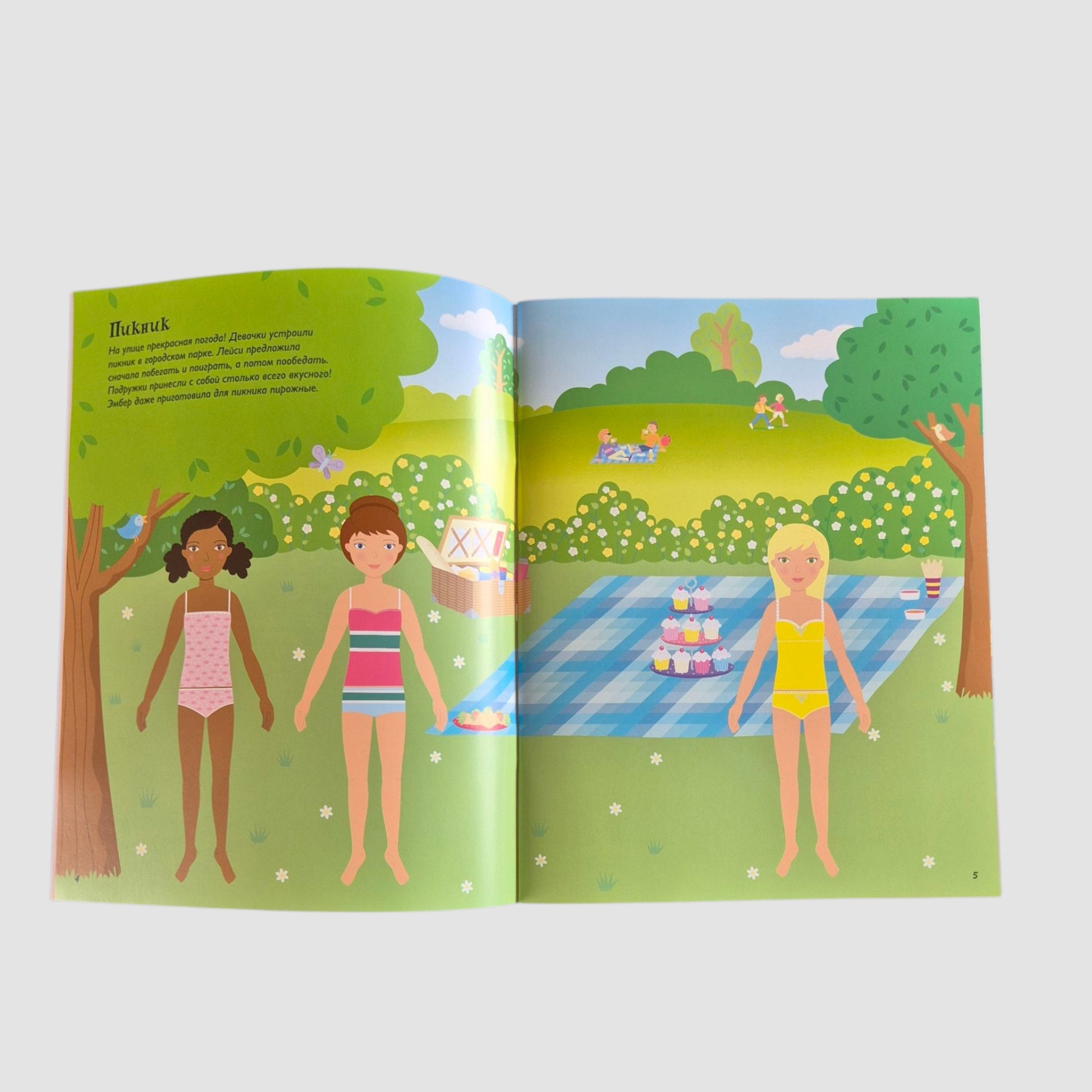 Meet three inseparable girlfriends who love to have fun! Choose outfits for the girls that are suitable for a picnic in the park, going to the movies, celebrating a birthday, horseback riding, and dancing. Read and play! Develop attention, imagination, fine motor skills, and artistic taste. Playing with books from the "Superstickers" series, a child develops fine motor skills, accuracy, and a sense of beauty. Kind and bright pictures are interesting to look at, and short educational stories help expand the horizons of little readers. The books are bright and high-quality: they have thick pages, glossy paper, and a nice cover. A child can play with a book for five hours, and thanks to the convenient format, take their favorite story with you on a trip. "Superstickers" will definitely please both children and their parents!
