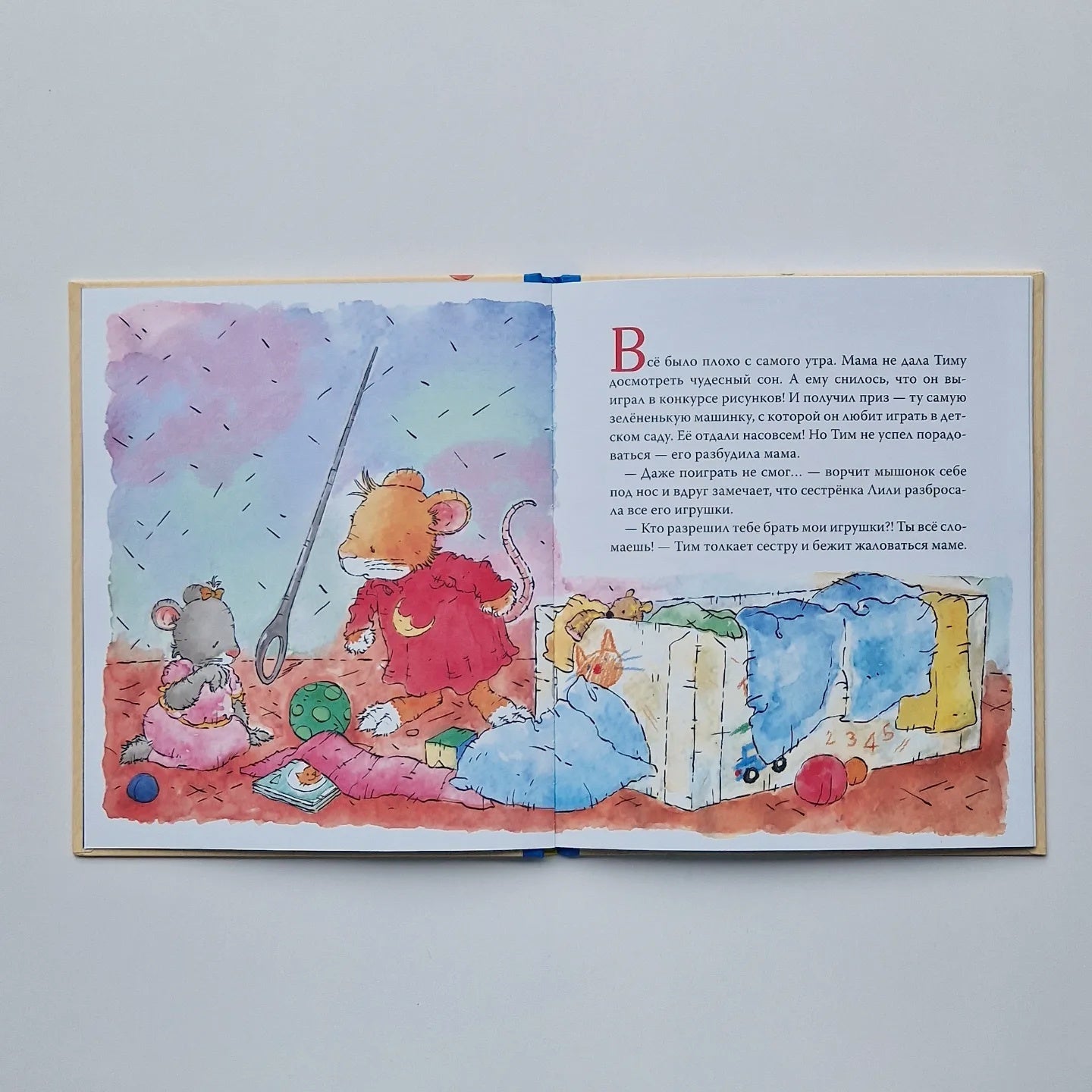 Today is a bad day for Tim the mouse. Everything is going wrong. He has cereal for breakfast, but Tim wanted crackers! His kindergarten teacher tells him fairy tales that he already knows. His friend won't let him play with his toy car. And the balloon he just bought immediately bursts! The mouse is terribly angry and blames everyone around him for his troubles.