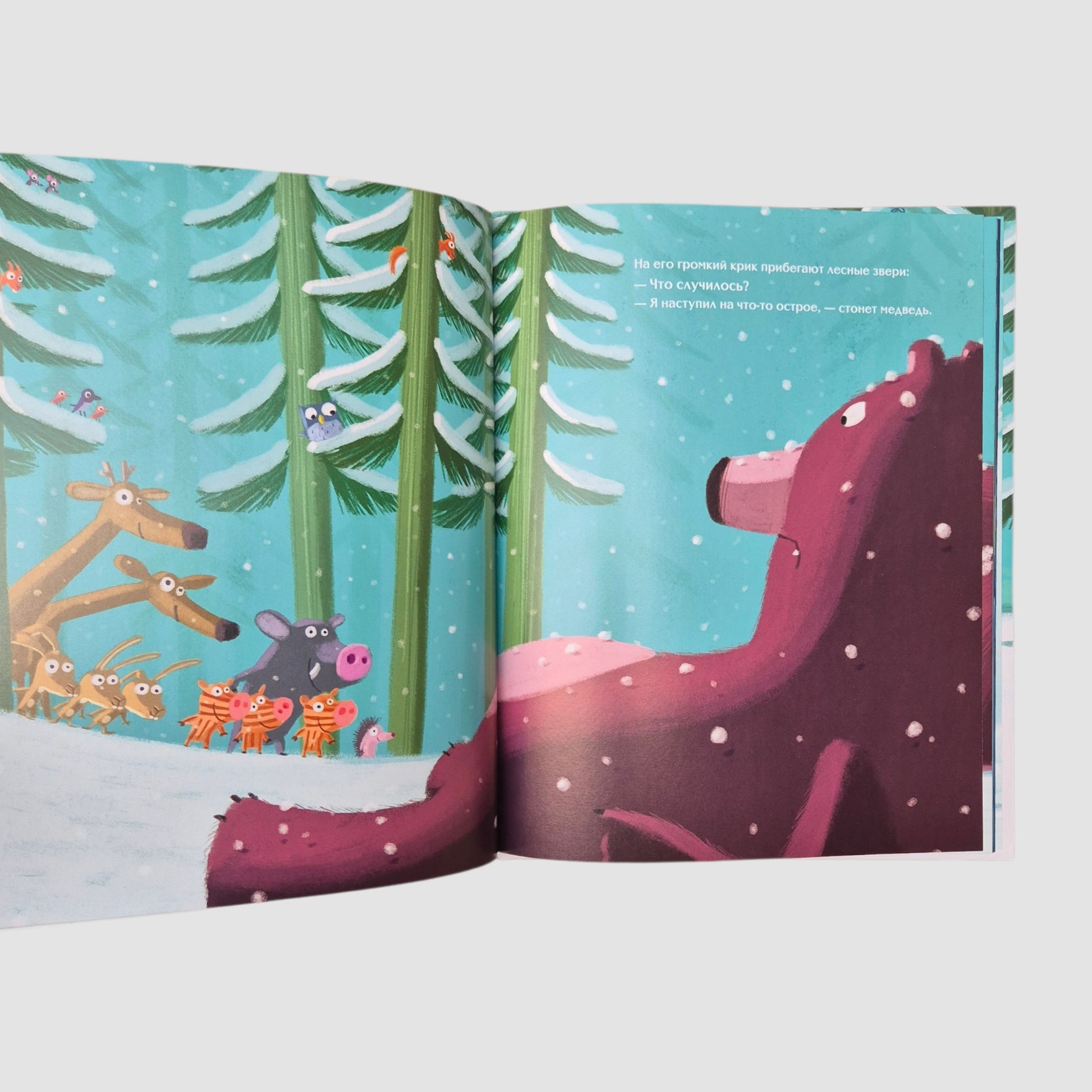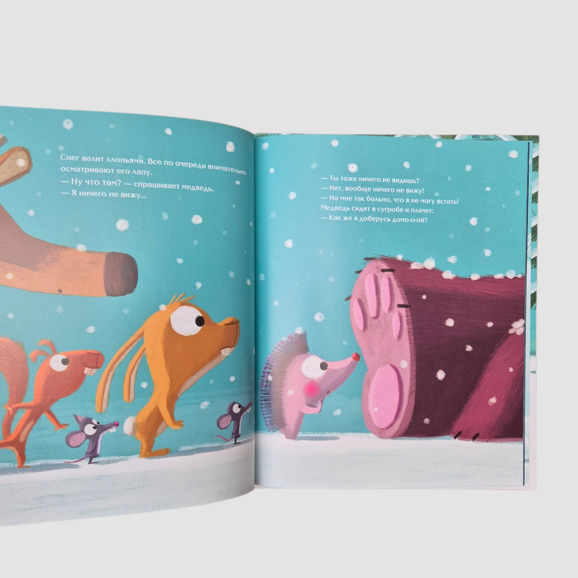 Совсем скоро Новый год! Медведь мечтает о пушистой ёлке, но... БАХ! — и он падает в сугроб, а выбраться сам не может. На помощь спешат друзья, но снегопад такой сильный, что едва видны носы! Смогут ли звери помочь медведю встретить настоящий Новый год?