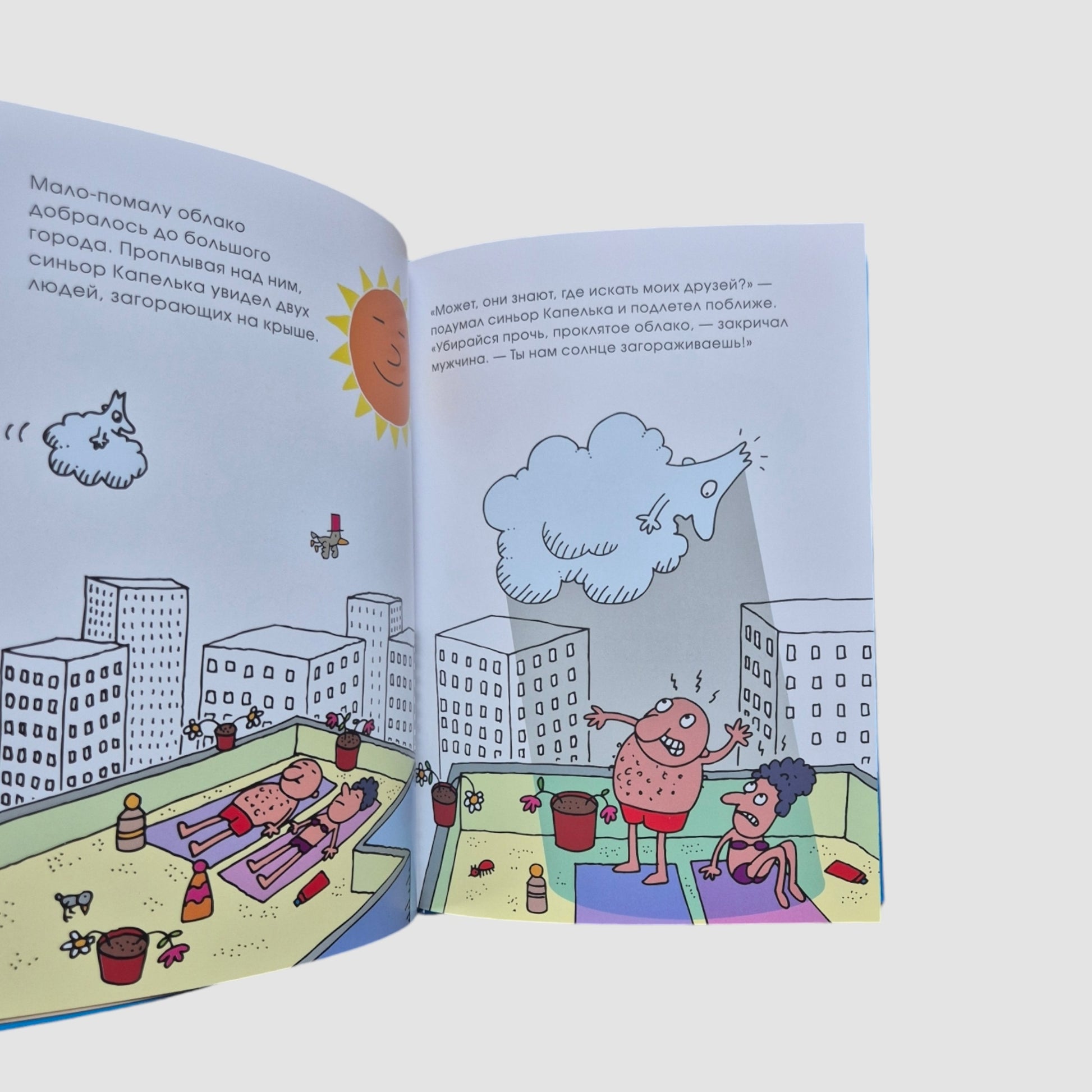 Signor Droplet went to look for his friends, with whom he played at the sea in the summer. On the way, Signor Droplet turns into a cloud, then into rain, into snow - what else can happen to a droplet of water in nature? And finally, he gets to the city apartment of his friends, flows through the pipes, through many pipes, he is everywhere where there is water in the apartment.