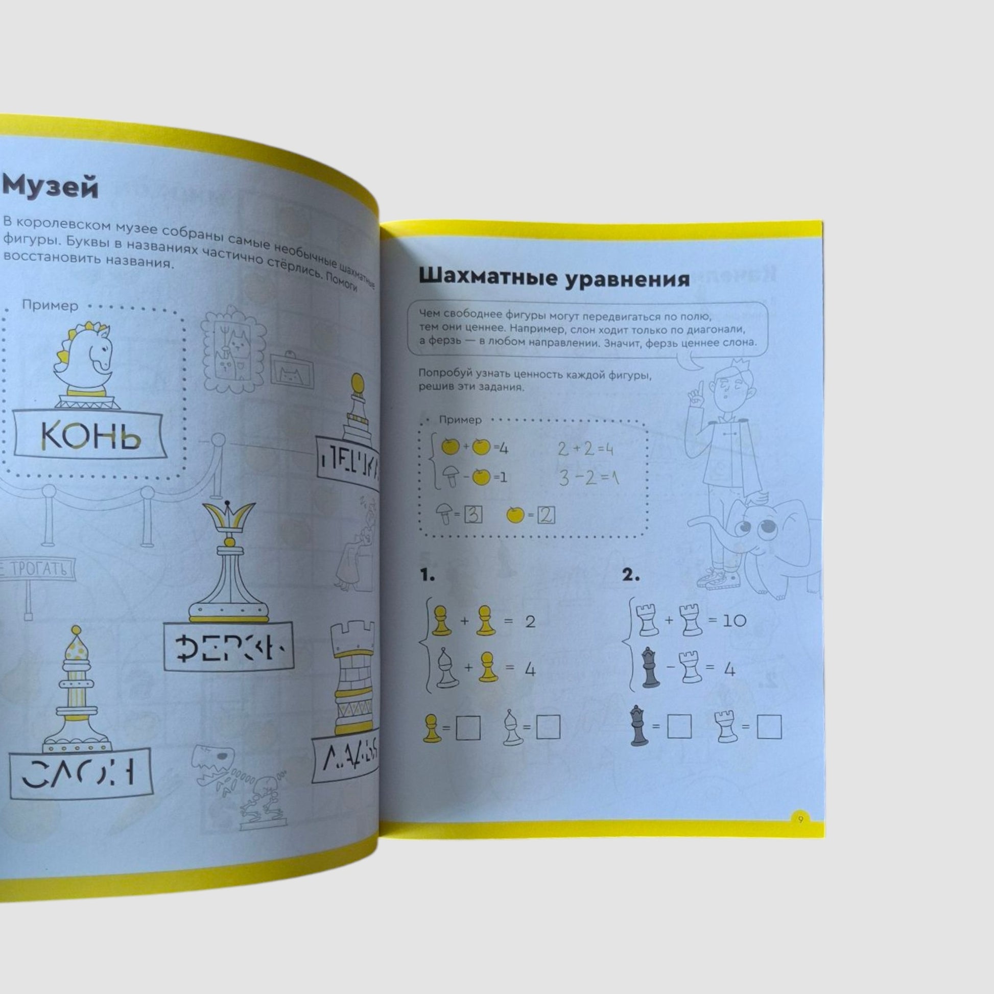 Playing chess is a great way to develop your intellect. But learning it on a strict chessboard is not very interesting for many children. The goal of the “Chess Basics and Logic” workbooks is to prepare your child for classic chess, which is very abstract for children under 9–10 years old. To achieve this, the workbooks feature a fairy-tale plot line and use associations with familiar objects.