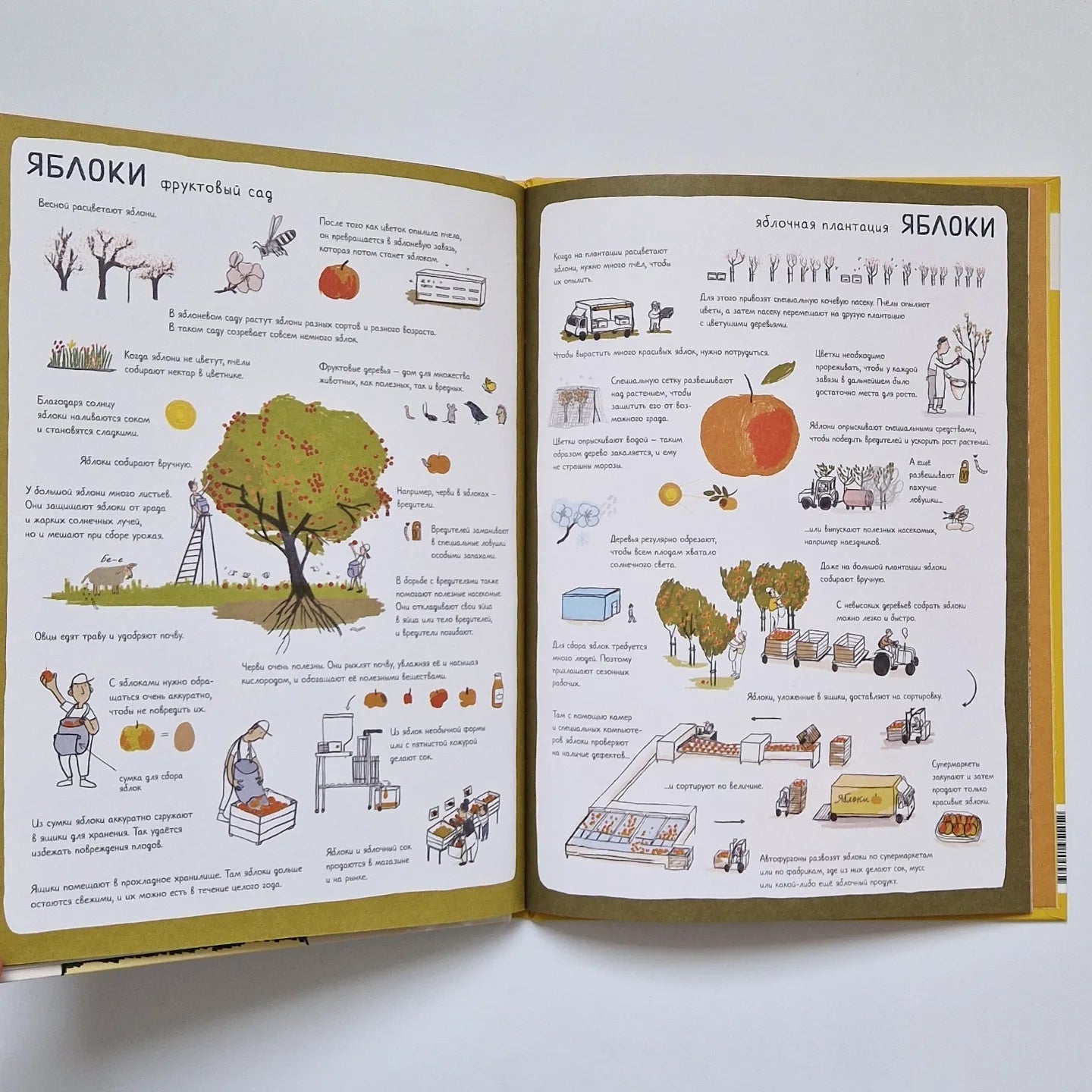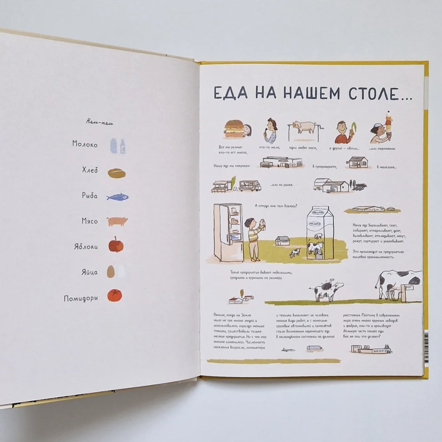 Julia Dürr's book will tell you about the long journey that food goes through before it ends up on our table: how our food is sown, grown, harvested, baked, sorted, packaged and transported. Bright and clear illustrations will help you understand how large and small food industry enterprises work, how farm milk differs from factory milk and how much work is required for us to be able to buy a tomato or an apple on the counter. After reading the book, you will take a new look at the contents of your plate!