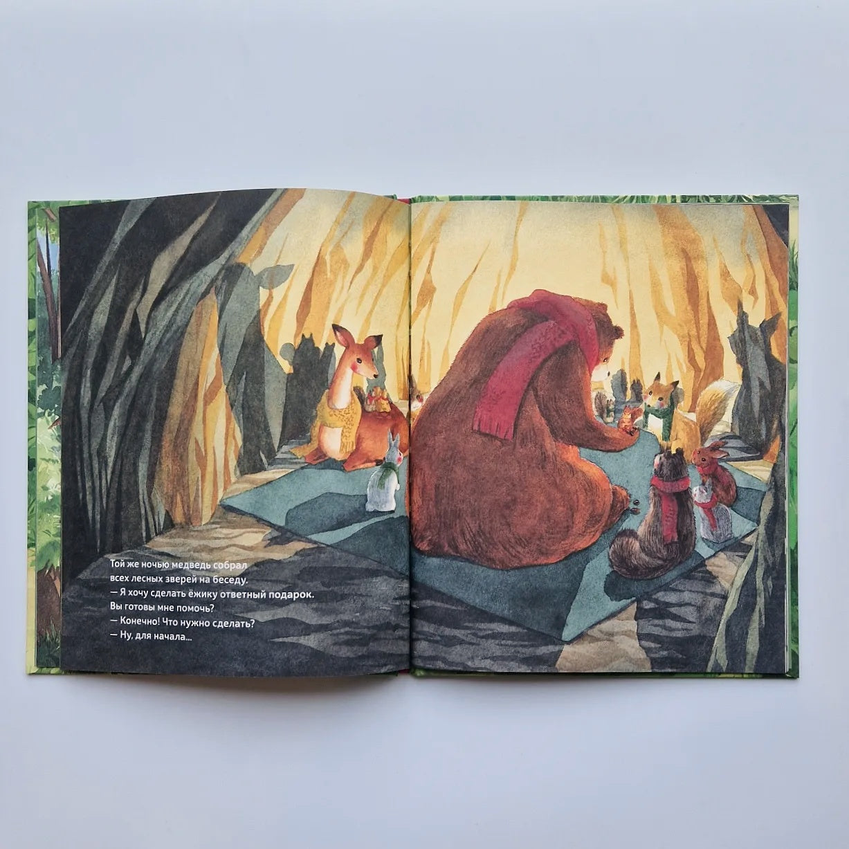 How he wants to hug his friends after a long winter! But the hedgehog's needles are so sharp that the baby has to stay away.
