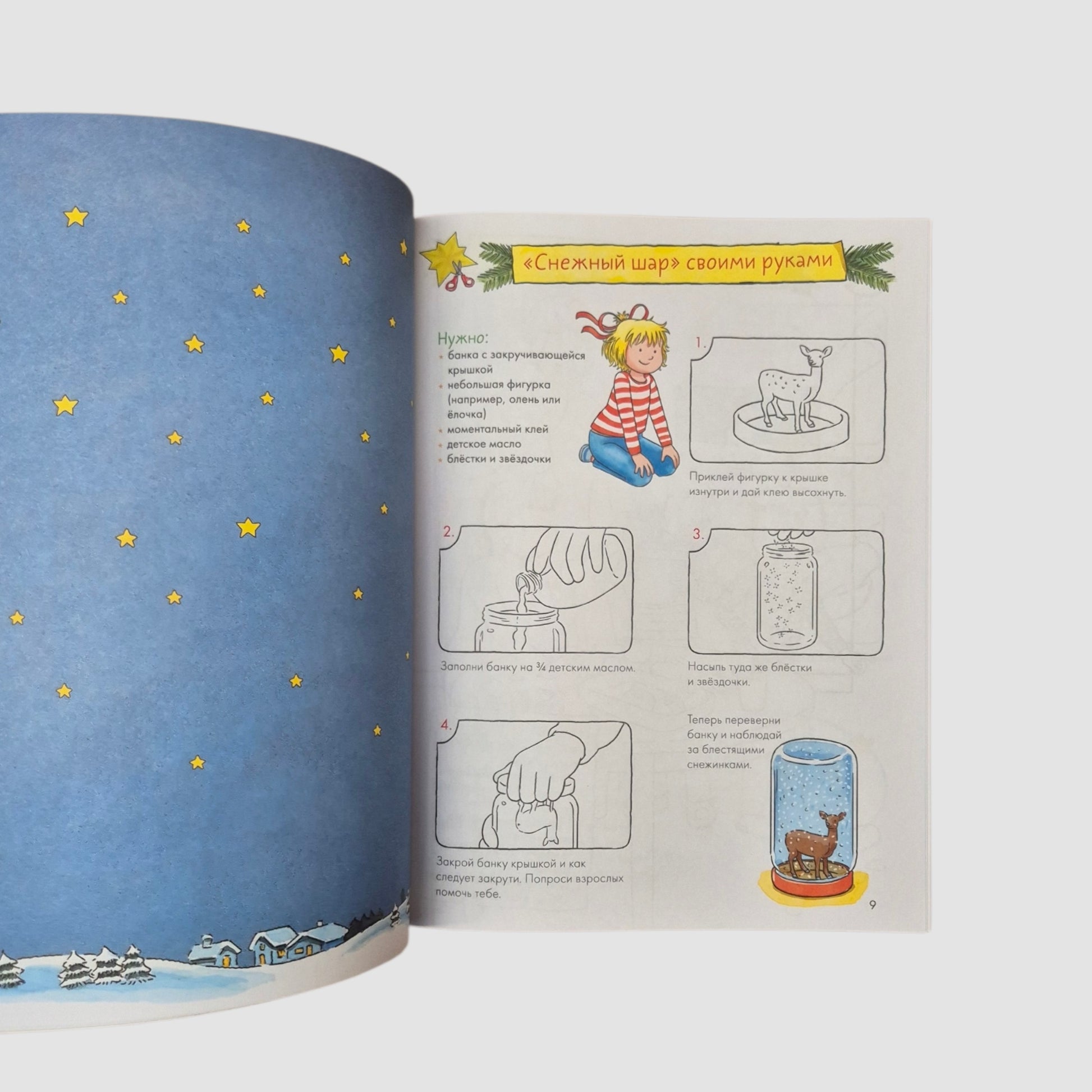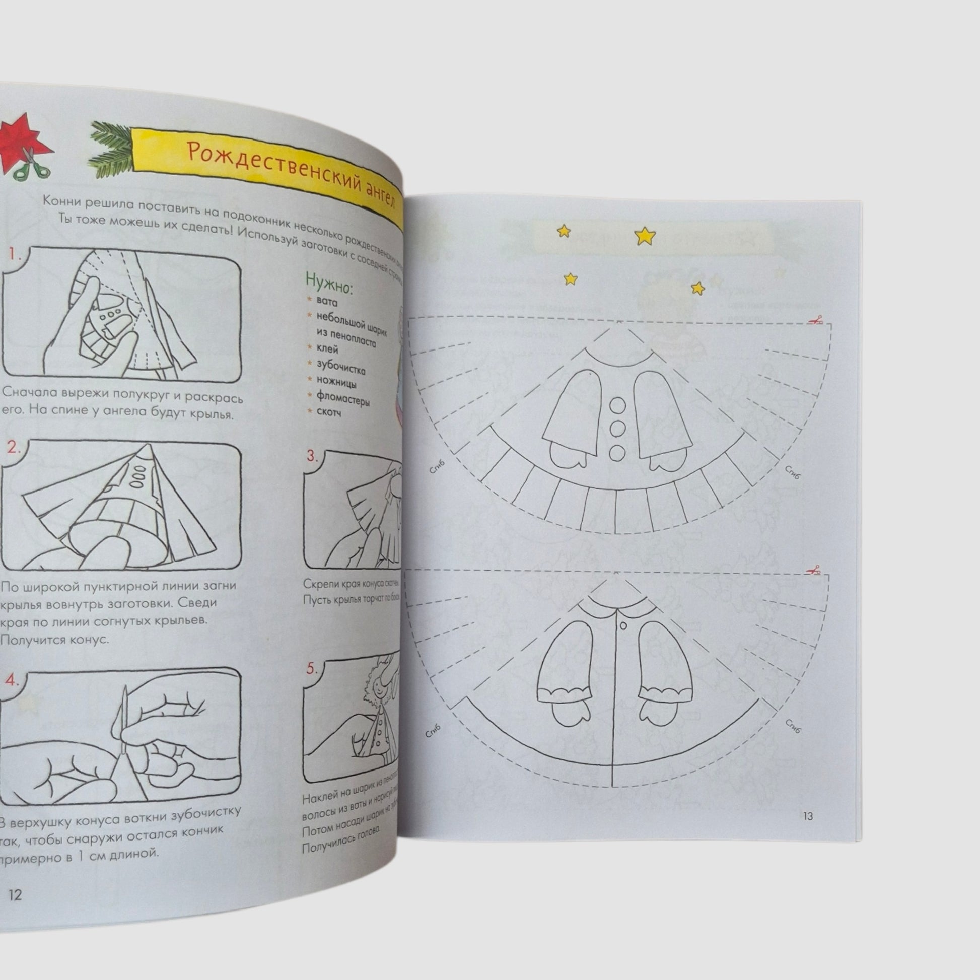 Самая новогодняя книжка с заданиями от Конни. Идеи для украшения дома и елочные игрушки своими руками, шаблоны поздравительных открыток, зимние лабиринты и загадки и, конечно, наклейки для украшения подарков!