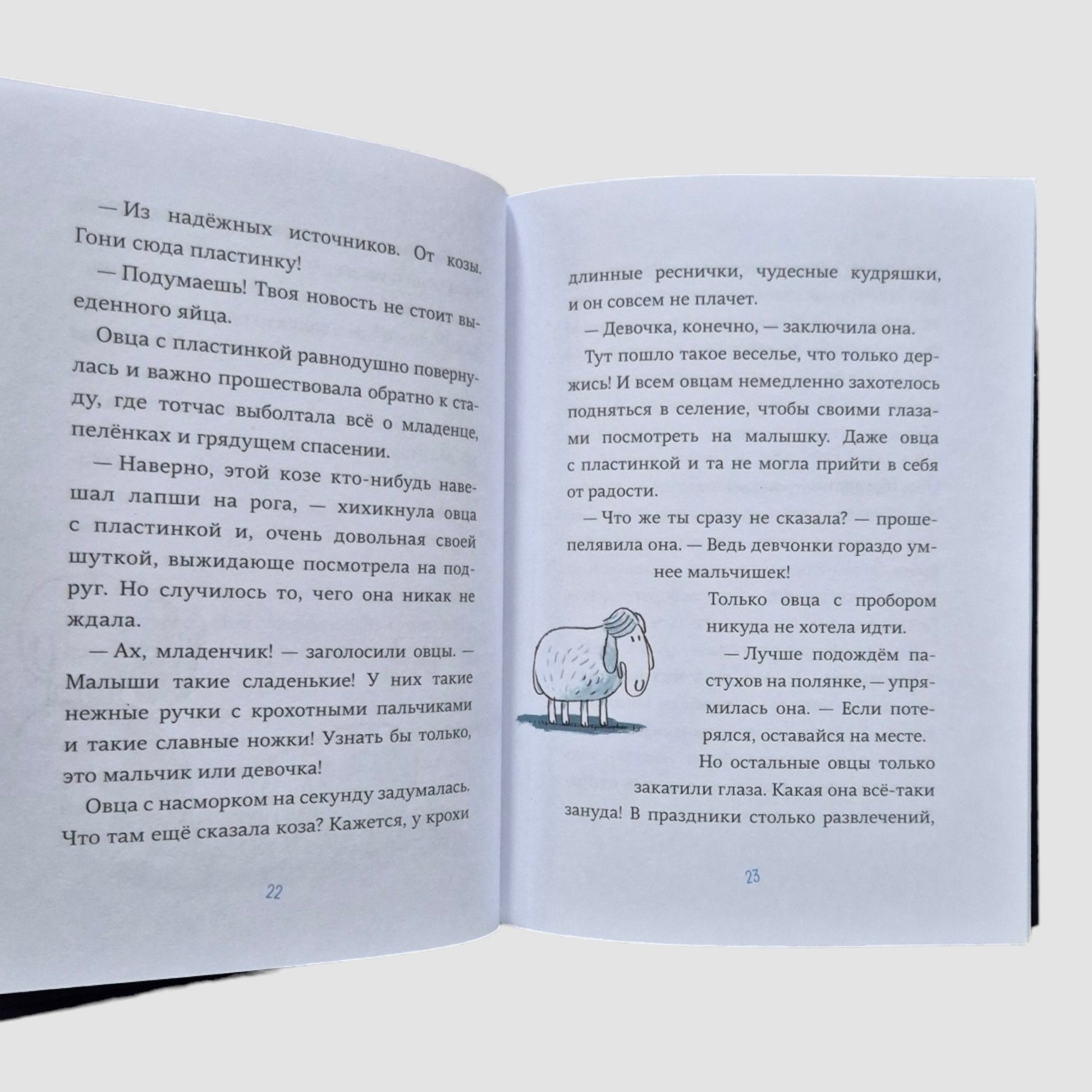 In his new book, Ulrich Hub, the renowned German children's writer and author of the bestseller "The Ark Leaves at Eight," once again turns to the biblical story, interpreting it with exceptional humor. The book's heroines - a sheep with a plaster cast, a sheep with a side parting, a sheep with a dental plate and their friends - discuss whether it is worth giving a newborn a gift certificate to a store and how best to tell the shepherds that things made of sheep's wool are no longer in fashion. This short but incredibly funny book briefly touches on the topics of plastic pollution of the planet and gender equality, but the main focus is on theological issues: searching, faith in miracles and love for one's neighbor.