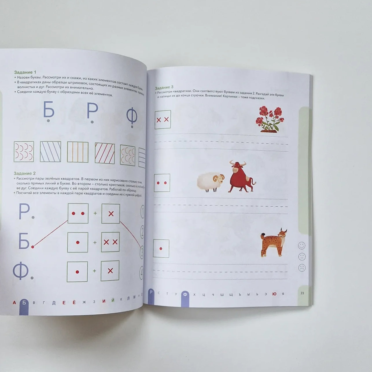 The copybooks will teach the child step by step how to write the letters of the Russian alphabet, prepare the hand for writing all the elements that make up printed letters, and help develop the ability to analyze the image of a letter, and find differences and similarities.