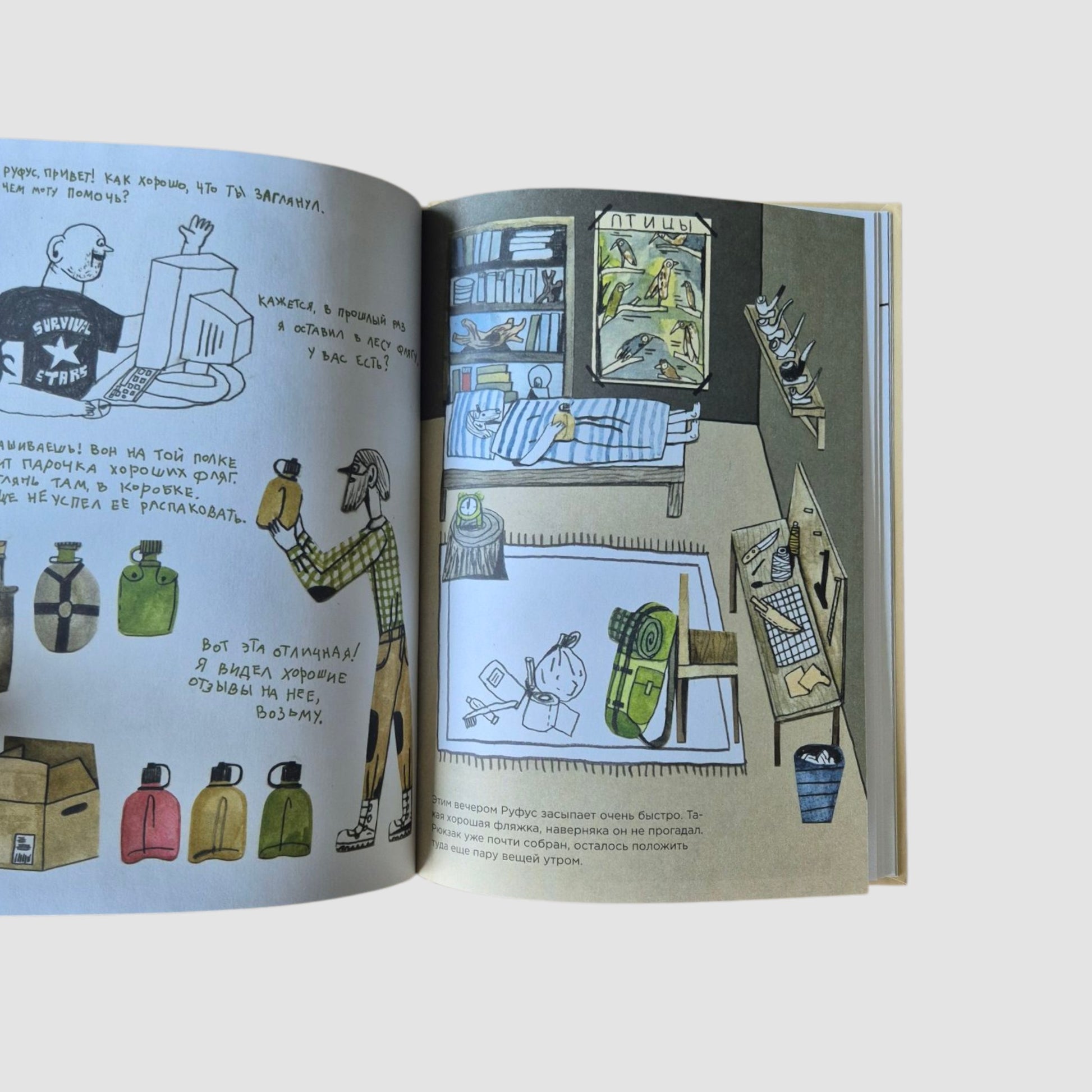 Rufus lives in the city, but his beard smells of pine, campfire smoke, and blackberry tea. Every week he can't wait for the weekend to go out into nature. He knows exactly what to take with him on a hike, and he really doesn't like people who leave trash in the forest.