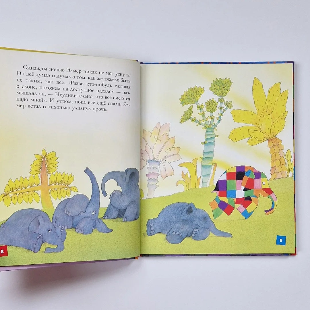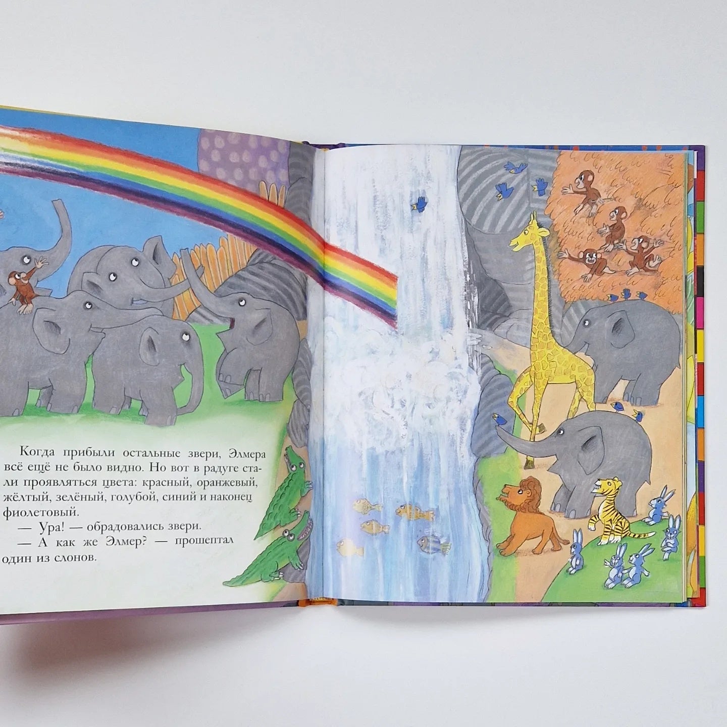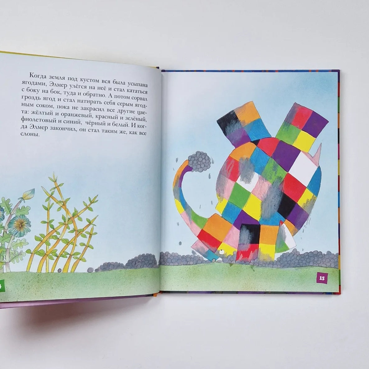 Elmer the Motley Elephant is the most unusual elephant in the world! But sometimes he wants to be like all the other elephants - elephant-colored. And he finds a way to do it. But no matter what he looks like, you will never get bored with Elmer! He constantly makes other elephants laugh and plays funny pranks. Elmer is also a good friend and is always ready to help others. For example, if a baby elephant loses a toy, Elmer will share his with him. And if suddenly the rainbow in the sky becomes colorless, Elmer is ready to give all his colors to color it. Stories about the motley elephant not only captivate and amuse young readers, but also teach them to be friends, ask for forgiveness and help each other, be honest and fair and be yourself.