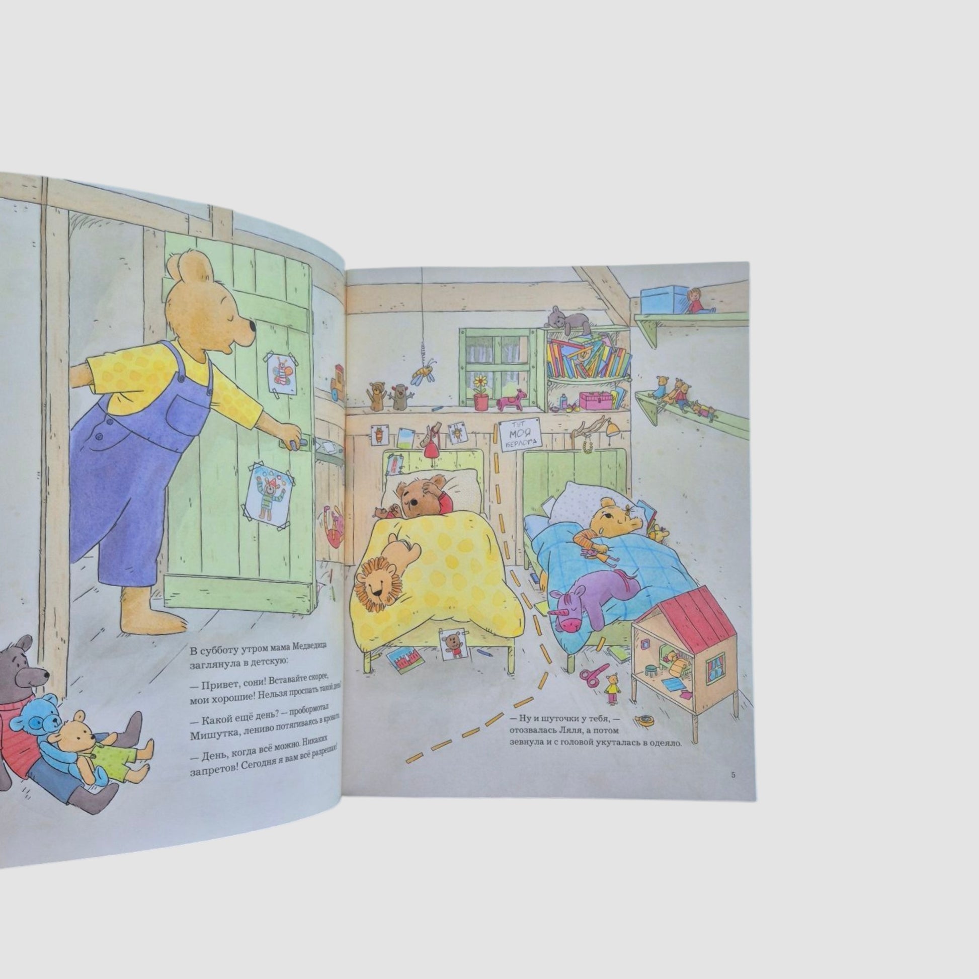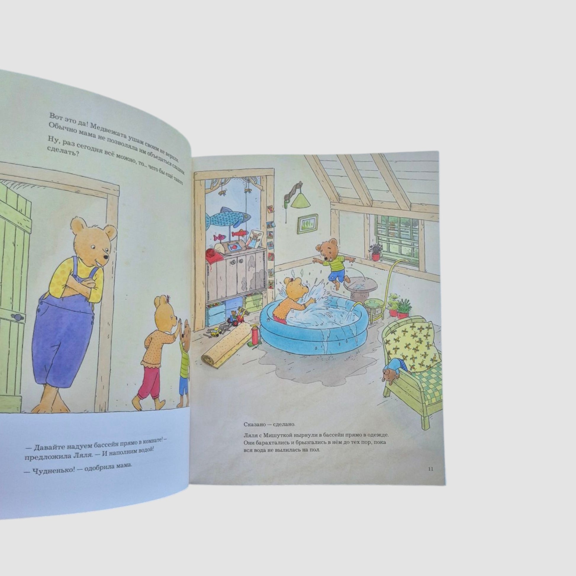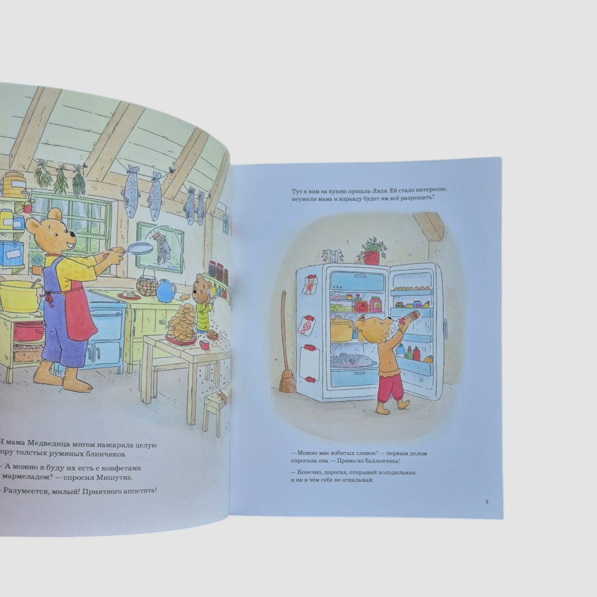 One Saturday morning, to the great surprise of Lyalya and Mishutka, Mama Bear announced that a very unusual day was waiting for them: a day when everything is allowed. Mama promised that today she would not forbid her cubs anything, and they would be able to do whatever they wanted.