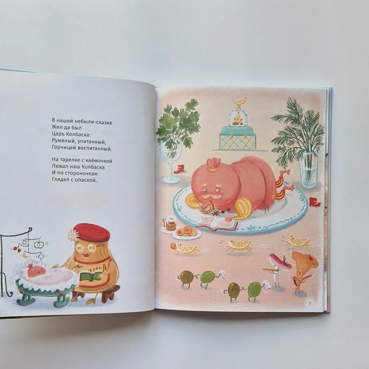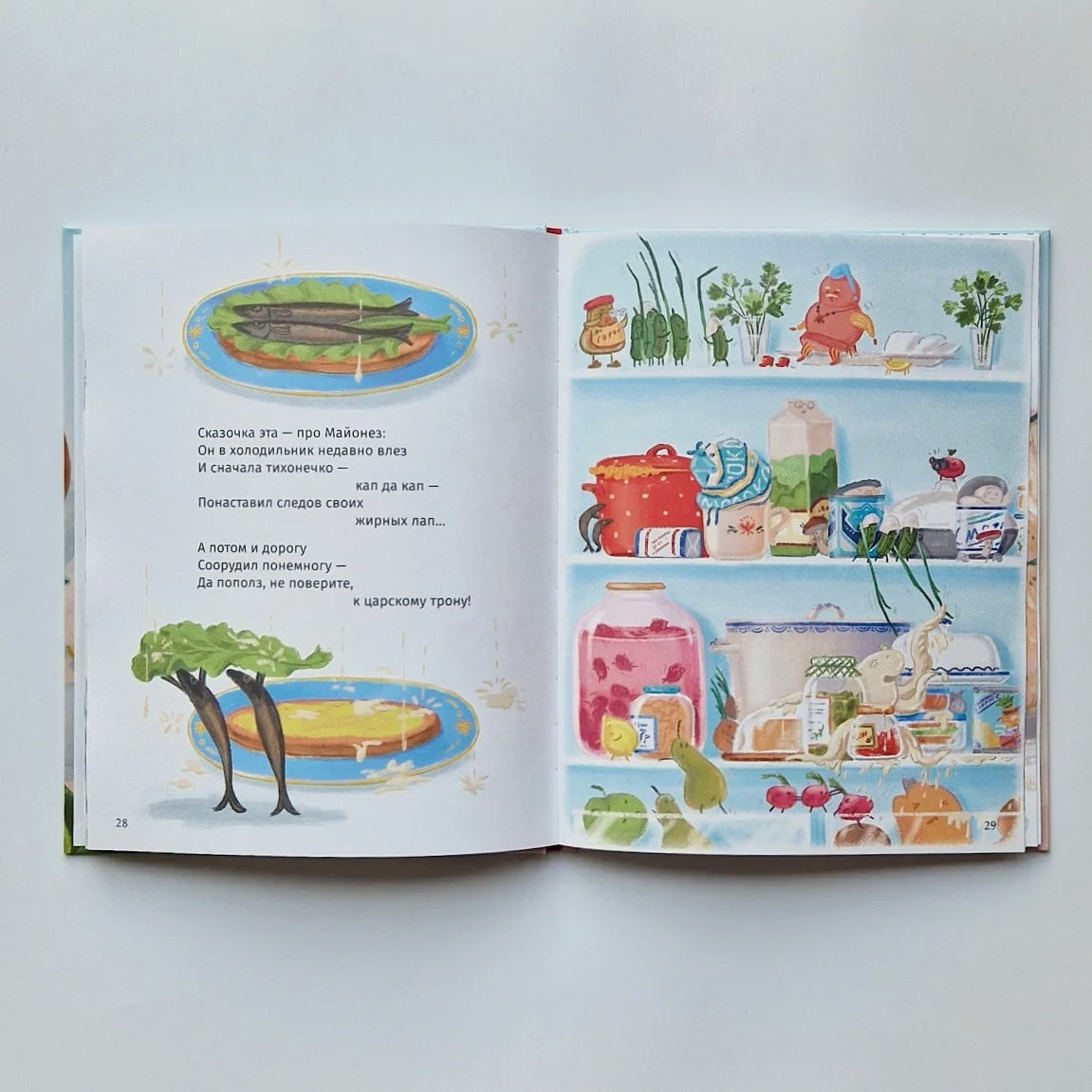 What happens in the refrigerator behind a closed door? The popular children's poet Masha Rupasova knows about it. She will tell you about the fairy-tale adventures of Tsar Sausage: how he and his brave fighters - lightly salted Cucumbers - fought with Mayonnaise and caught Carrot, how he arranged a competition in jumping into broth and almost froze in the refrigerator. You will find many funny and incredible stories with beautiful illustrations by Svetlana Nelaeva.