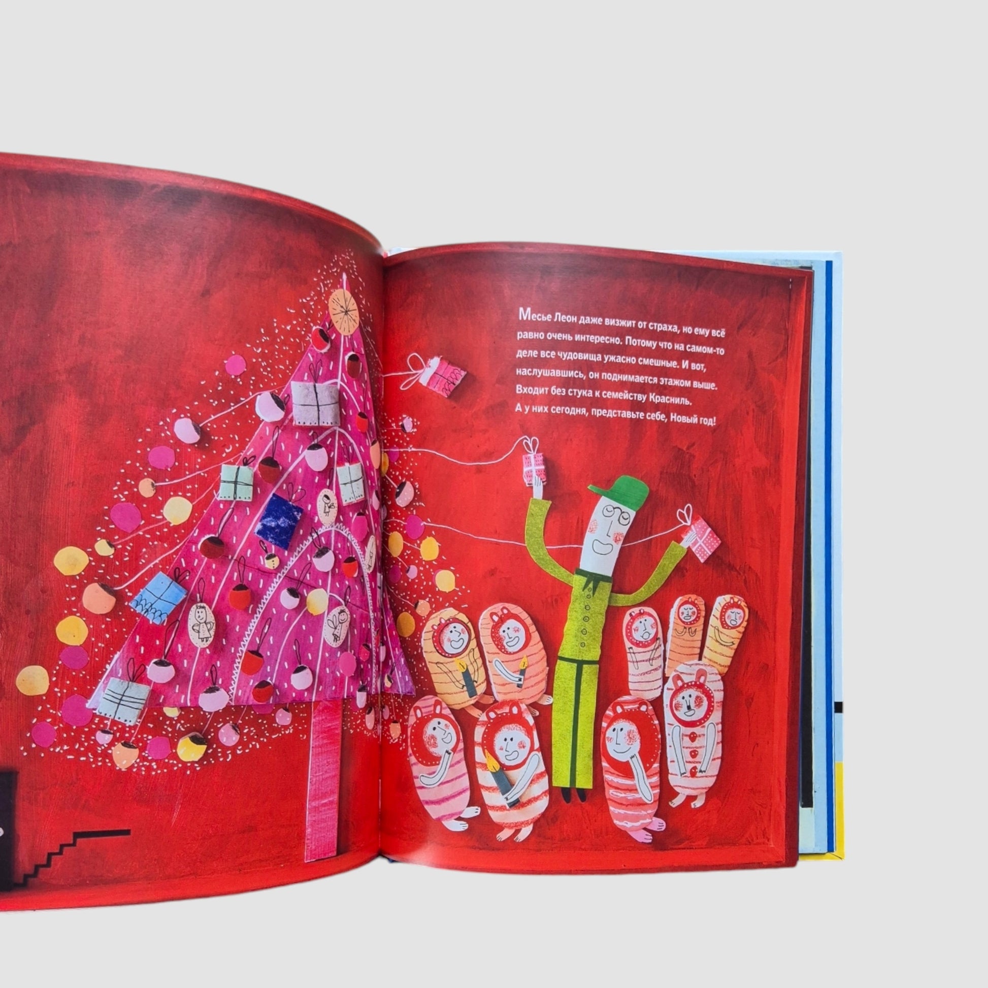 The author and artist were inspired to create this story by Piet Mondrian's painting "Composition with Large Red Surface, Yellow, Black, Gray and Blue".