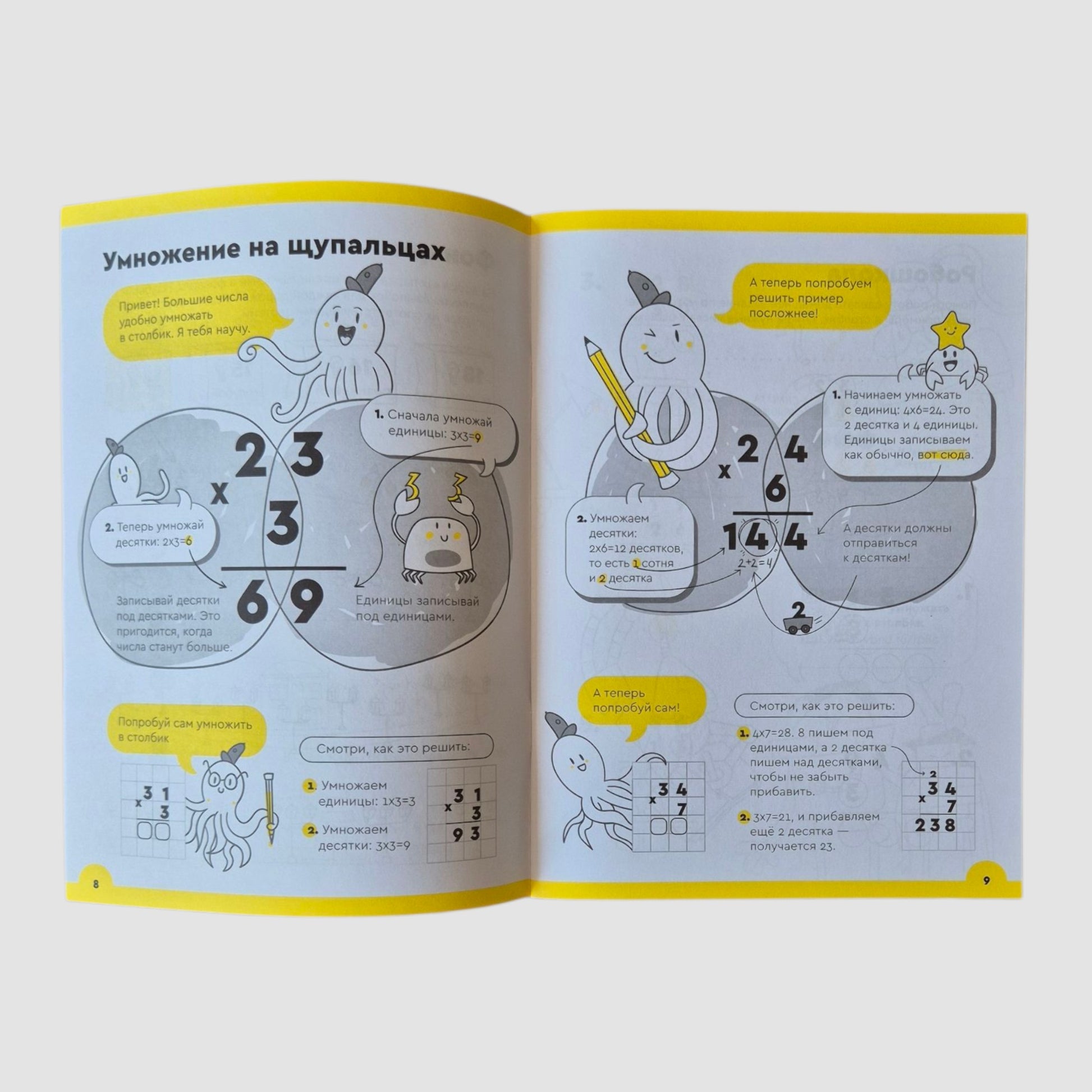 Advanced multiplication for those who know the basics! With this workbook, your child will improve their multiplication skills and learn to confidently multiply multi-digit numbers. Dozens of exciting examples, comics, life hacks and no cramming - the real magic of game-based learning!