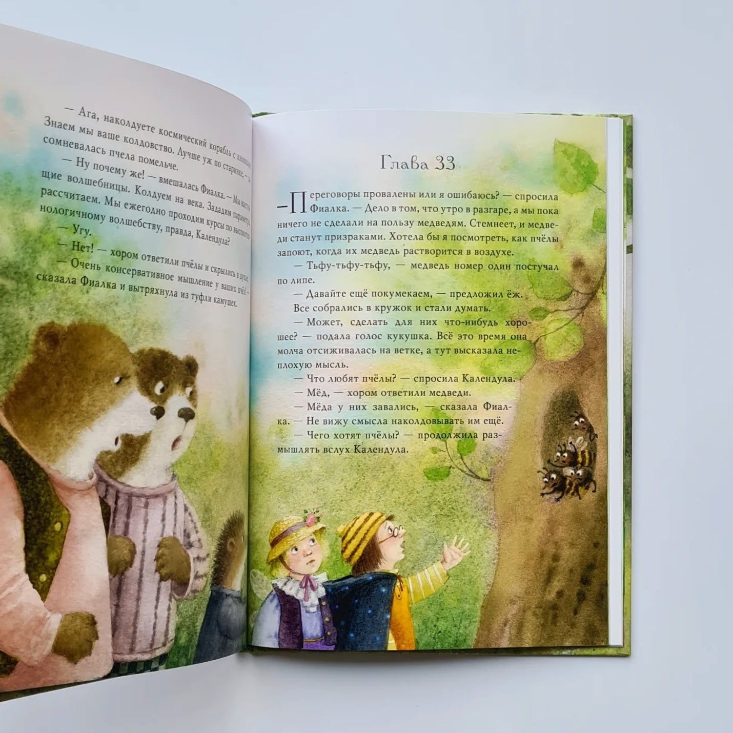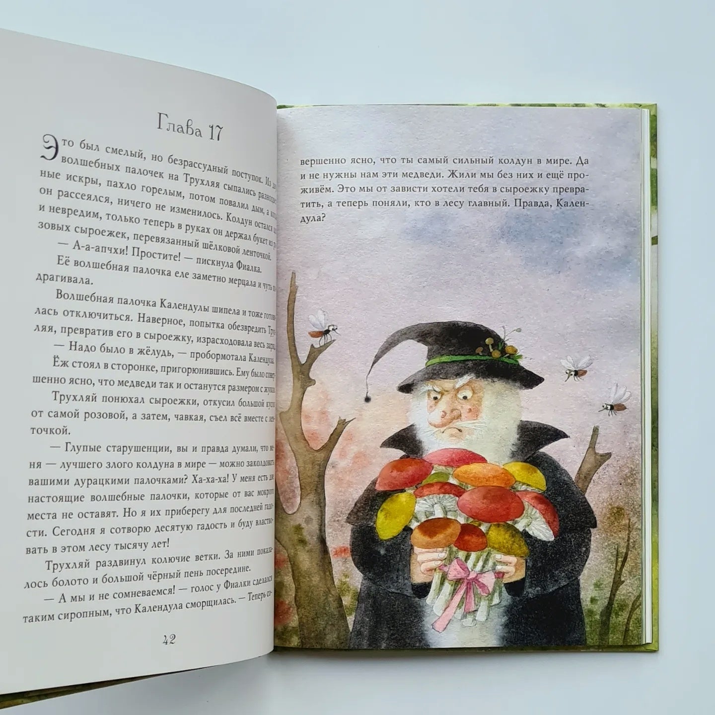 One day, a hedgehog came to Violet and Calendula and brought terrible news: bears have disappeared in the distant forest! Yes, it turns out that there are as many as eight bears living there, who suddenly got lost! And not just lost, but shrunk in size to an ordinary russula or even a beetle and may soon disappear altogether... And the most evil sorcerer in the world named Trukhlyay bewitched them. And now our heroines will not only have to fight the sorcerer, but also find the bears in various corners of the forest... But will all the bears want to return to their former lives? You will find out by reading this wonderful book, colorful and cheerful illustrations for which were drawn by Maria Korotaeva.