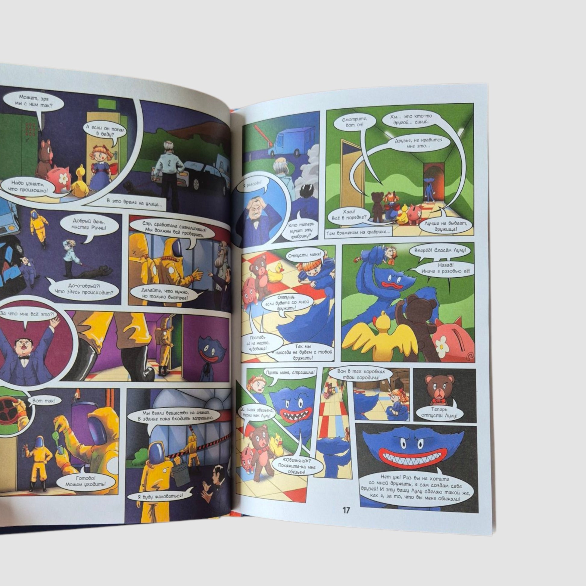 A comic that sheds light on the origins of Hagi Wagi. Who is Hagi Wagi? A cute toy or an evil monster? How did he even come into being? Was it someone's evil intent or an incredible coincidence? This story will answer all the questions and introduce readers to other toy heroes, including Hagi's charming pink friend. Uncover the mystery of the abandoned factory with this children's comic!