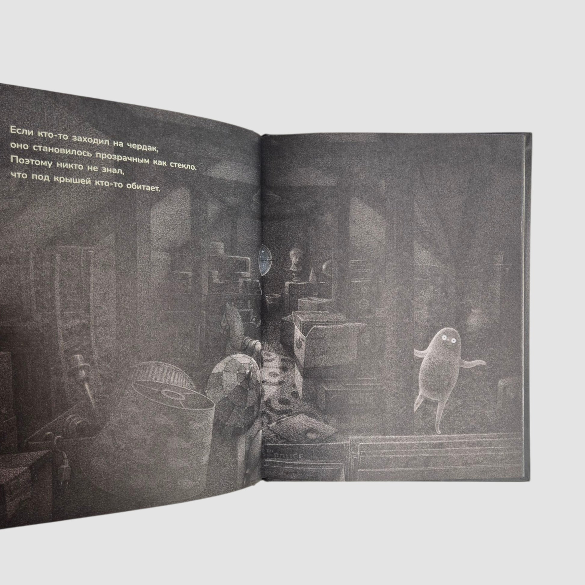 The little ghost lived happily ever after in the attic. The residents of the house had no idea that someone was living under the roof. All because the ghost showed miracles of disguise, sometimes becoming transparent, sometimes shrinking to the size of a matchbox, and it behaved quietly.
