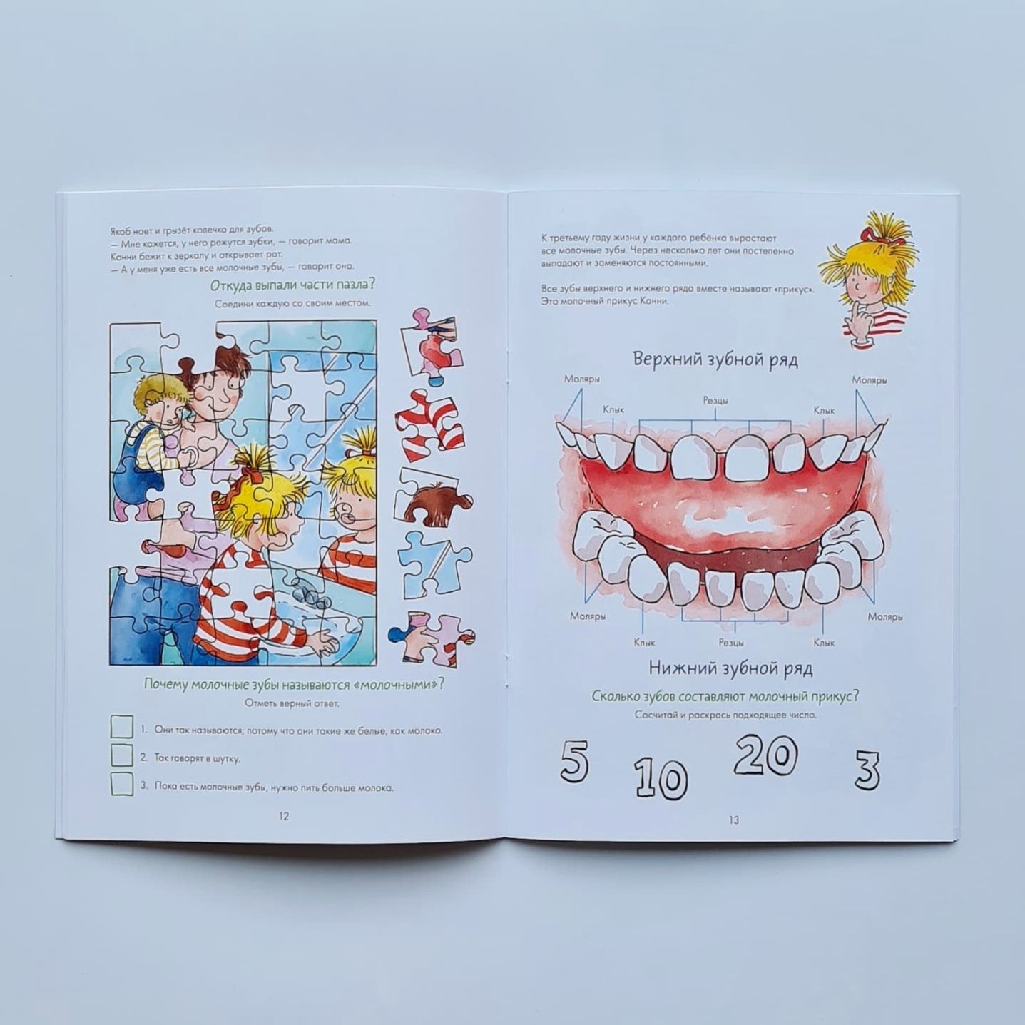 Inside you will find useful tips and interesting facts, quizzes and mazes, a walking game and instructions on how to make a box for baby teeth.