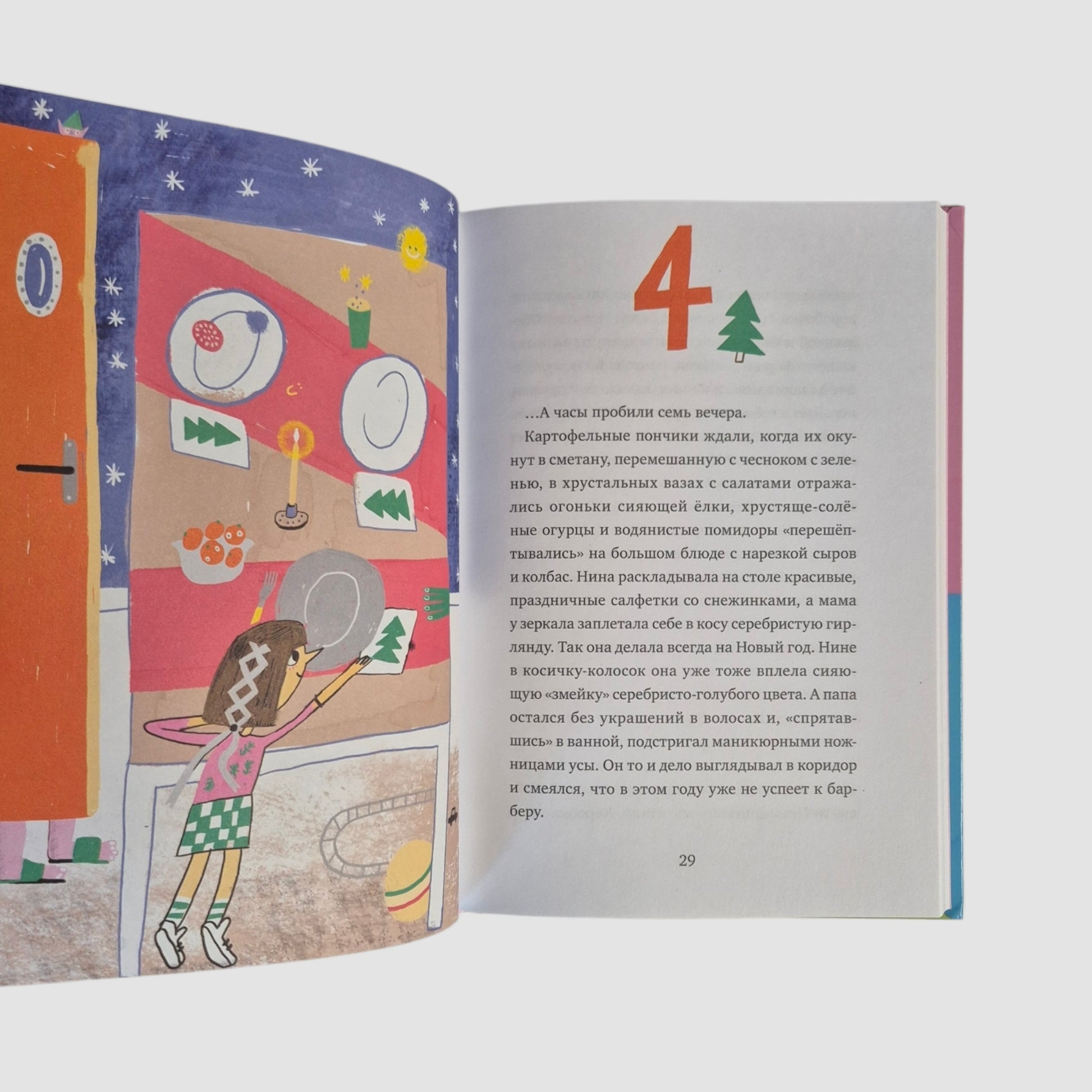 А папа ещё своим внезапным заходом взял и, кажется, напомнил ей про математику — её тройку. Так что Нина не только расстроилась, но даже разозлилась. И разозлилась так, что, не понимая, куда деть колючий злой ком, застывший в горле и заставляющий кусать губы и сопеть носом, как пылесос, перехотела чинить Деда Мороза. И, конечно же, вешать игрушки втихаря на ёлку. И даже делать домашнее задание! Вот так сложно быть Ниной 31 декабря!