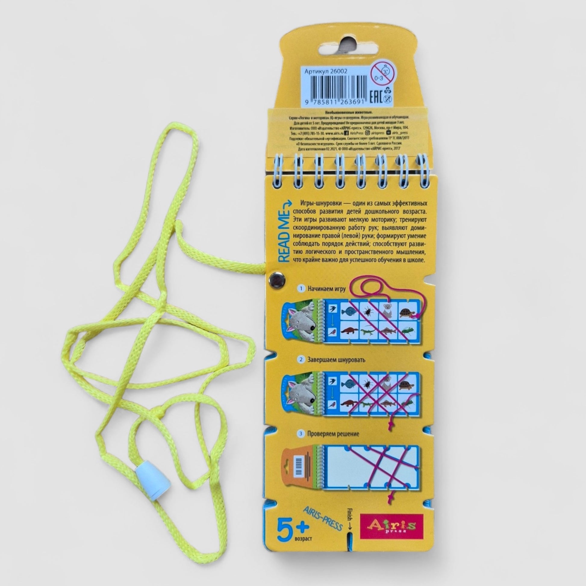 Games with a string develop attention, perseverance, and self-discipline. In addition to developing thinking, fine motor skills and coordination of movements are developed. Intuitive tasks help the child feel confident in their abilities and learn with pleasure. This is a simple and convenient manual for classes in kindergarten, at home, and on vacation.
