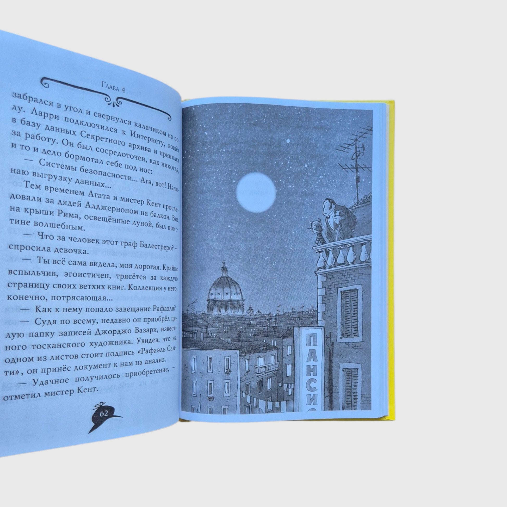 Наделённая потрясающим чутьём и феноменальной памятью, Агата Мистери мечтает стать писательницей. Но это в будущем, а пока она просто превосходная сыщица! Вместе со своим незадачливым кузеном Ларри, студентом детективной школы, она путешествует по миру, чтобы решать самые запутанные загадки. А помогают им преданный дворецкий, вредный сибирский кот и множество чудаковатых родственников. Из Секретного архива библиотеки Ватикана похищен ценнейший документ — только что обнаруженное учёными и ещё даже не расшифрованное завещание Рафаэля, великого итальянского живописца. Агата и Ларри Мистери немедленно отправляются в Италию. К счастью, в Риме живёт их дядюшка, выдающийся специалист по старинным текстам. Вместе им предстоит найти пропавшее письмо и заодно совершить сенсационное открытие...
