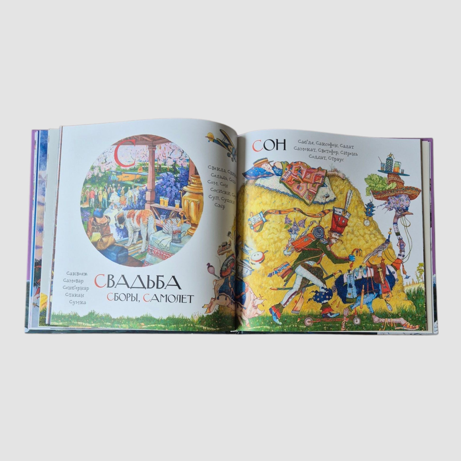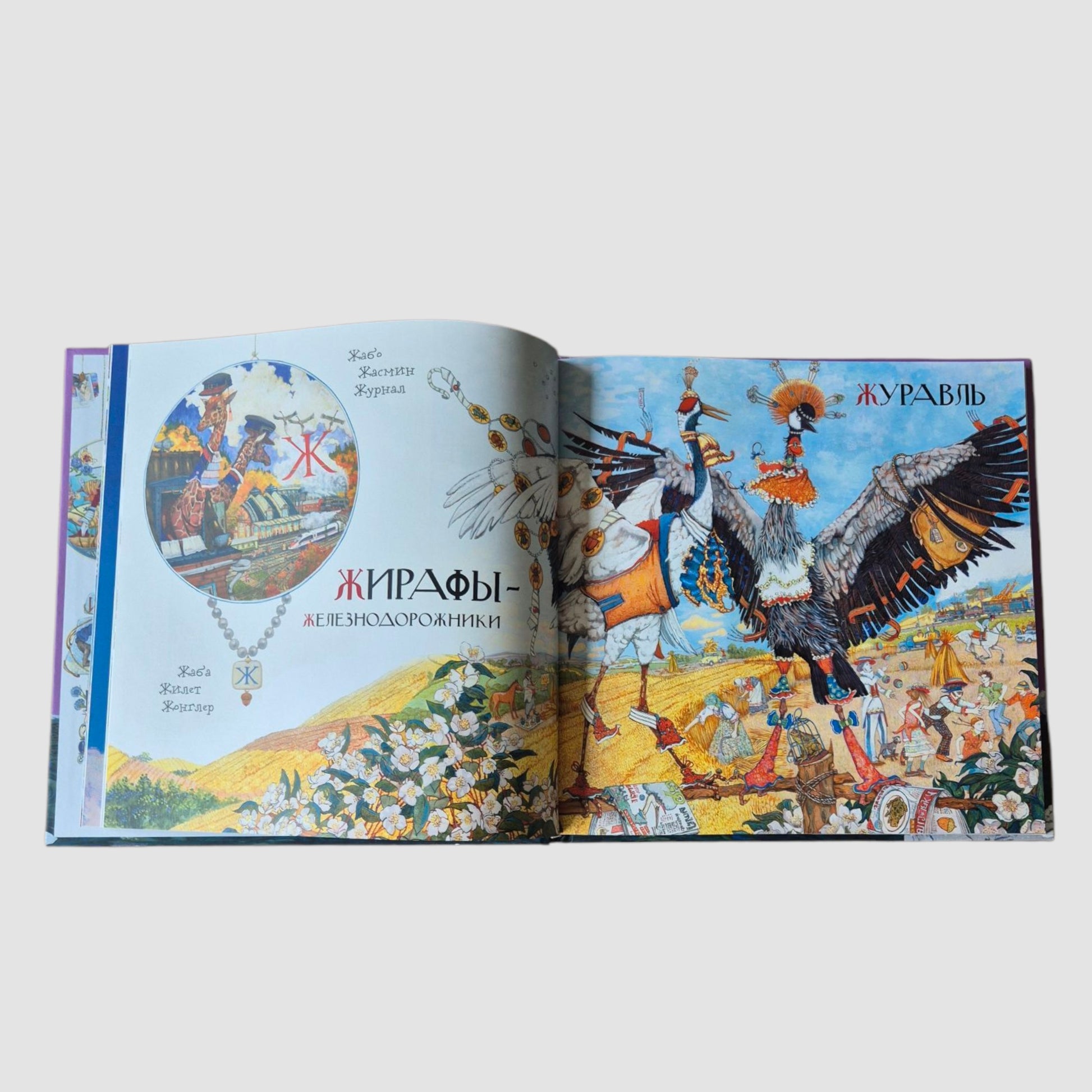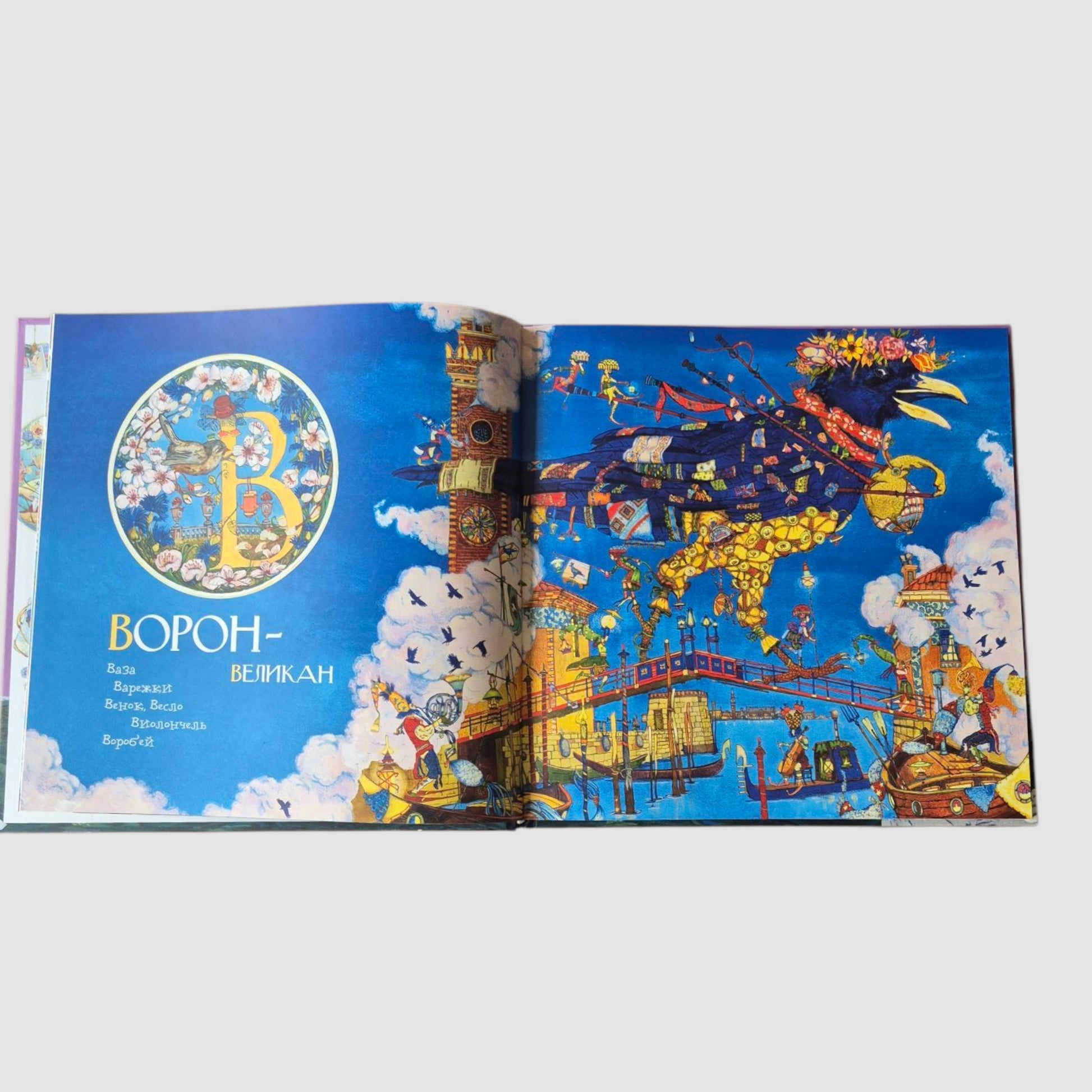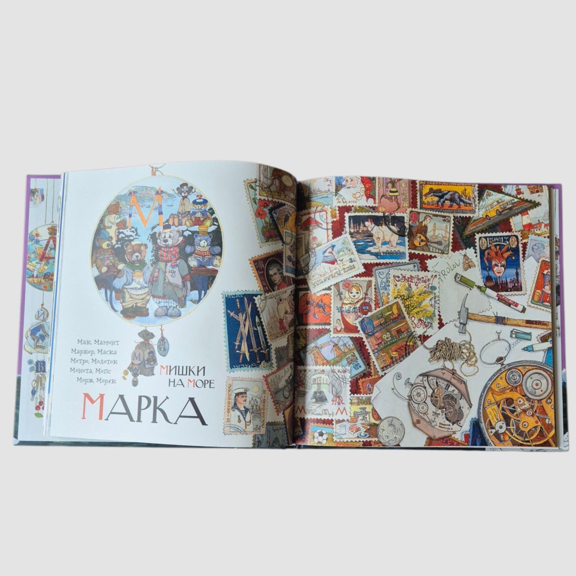 Все знают, что азбуку изучают в детстве. Но художник стирает все возрастные границы и предлагает взрослым вместе с детьми включиться в процесс нового изучения алфавита через увлекательную игру. 38 художественных картин — квестов. Каждая картина посвящена одной букве и на ней запечатлены предметы на эту букву.