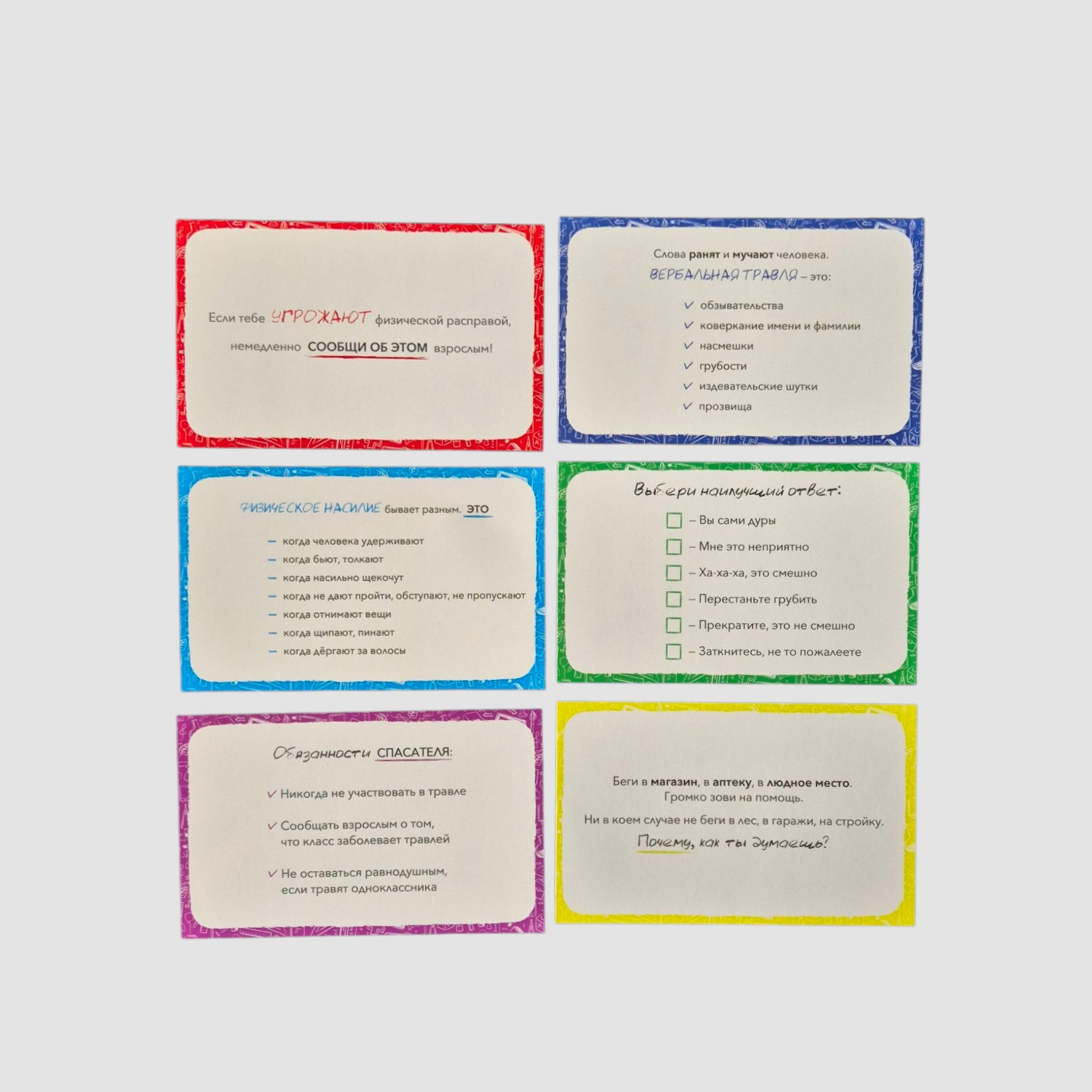 Помогите детям стать более уверенными и научите их находить выход из трудных ситуаций. Не упустите возможность сделать мир в классе добрее и безопаснее. Закажите Карточки Безопасности «Антибуллинг» и начните позитивные изменения уже сегодня!